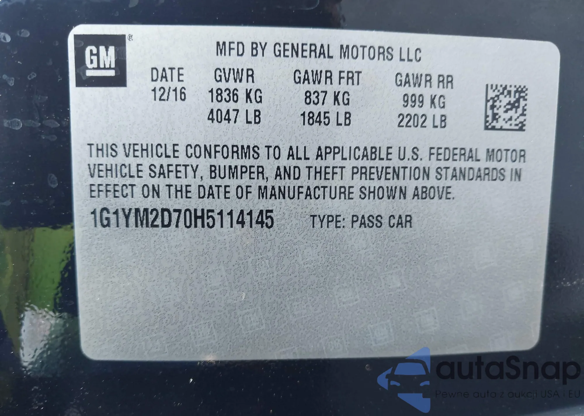 LOT: 43670357 VIN: 1G11E5SA9DF281381