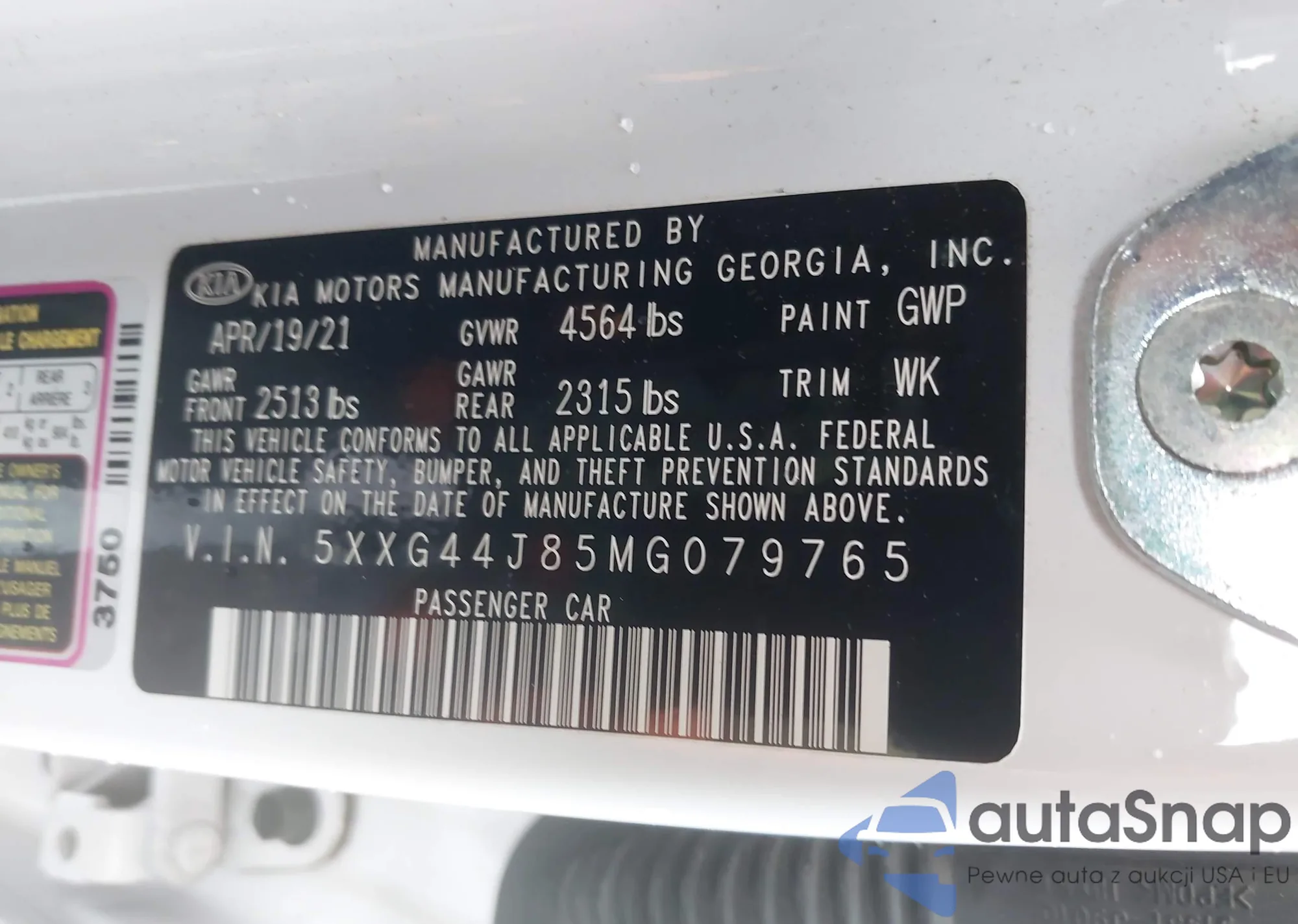 • VIN 5XXGT4L34LG381261