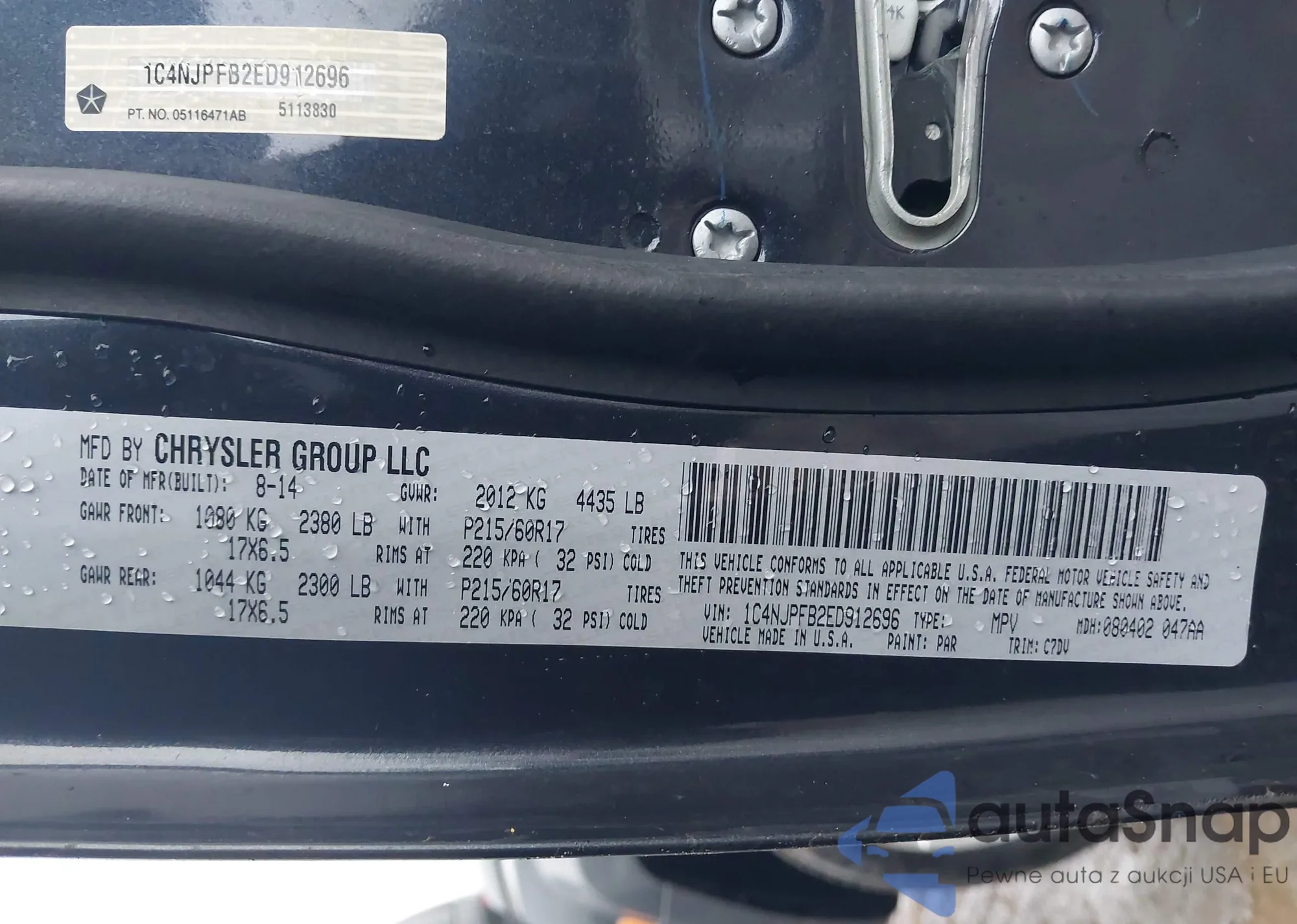 LOT: 43993505 VIN: 1C4NJPFB2ED912696