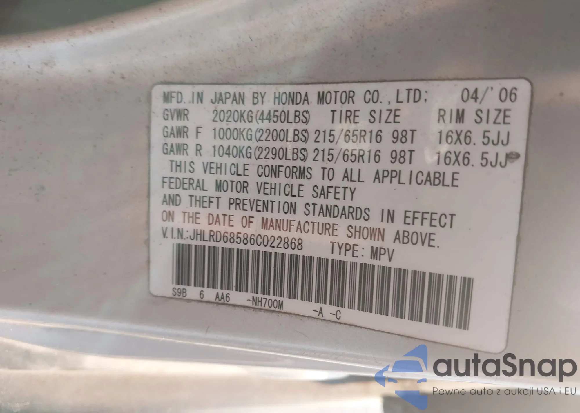 LOT: 43963707 VIN: YV1672MK4C2280702