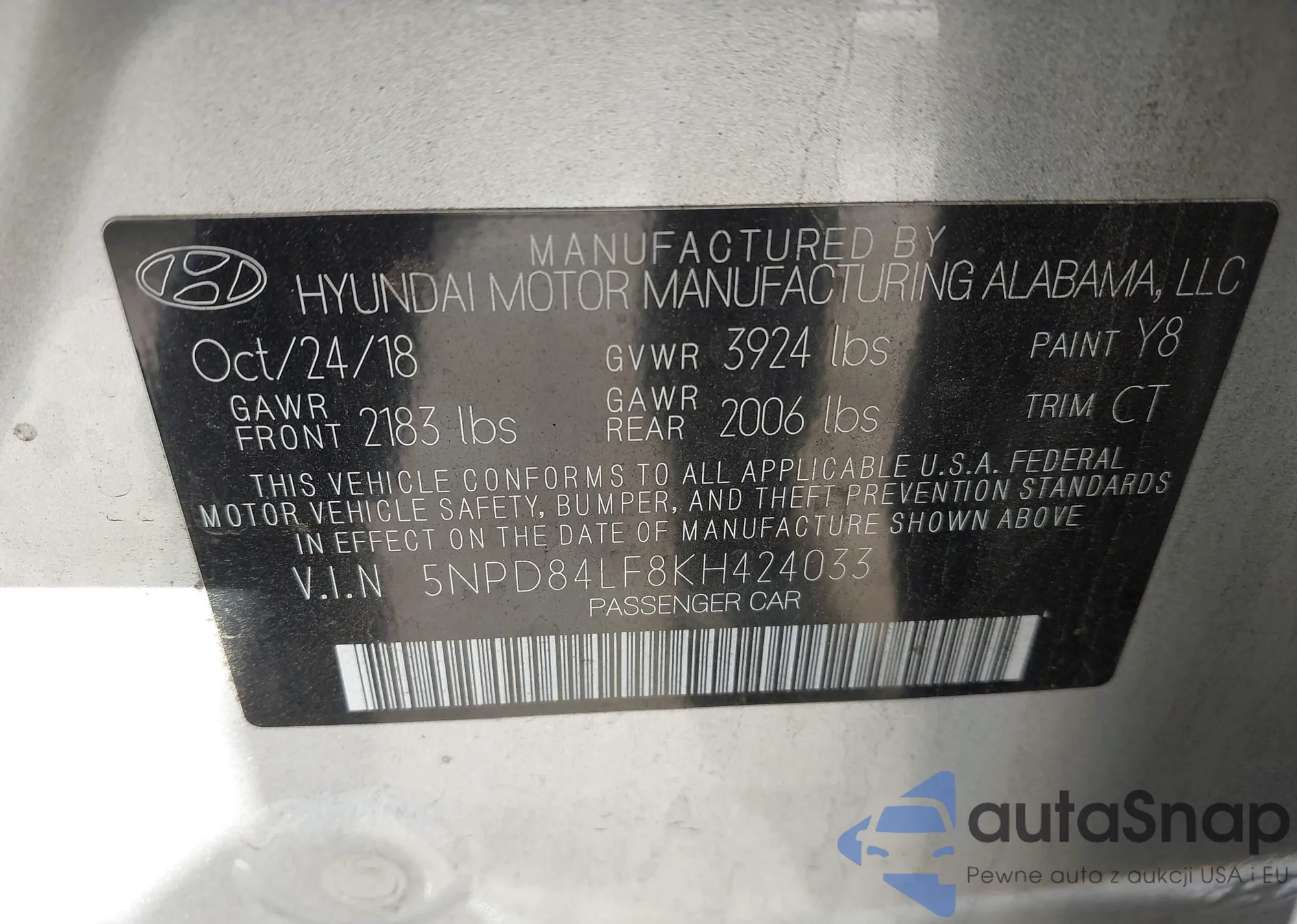 • VIN 5NPD84LF8KH424033