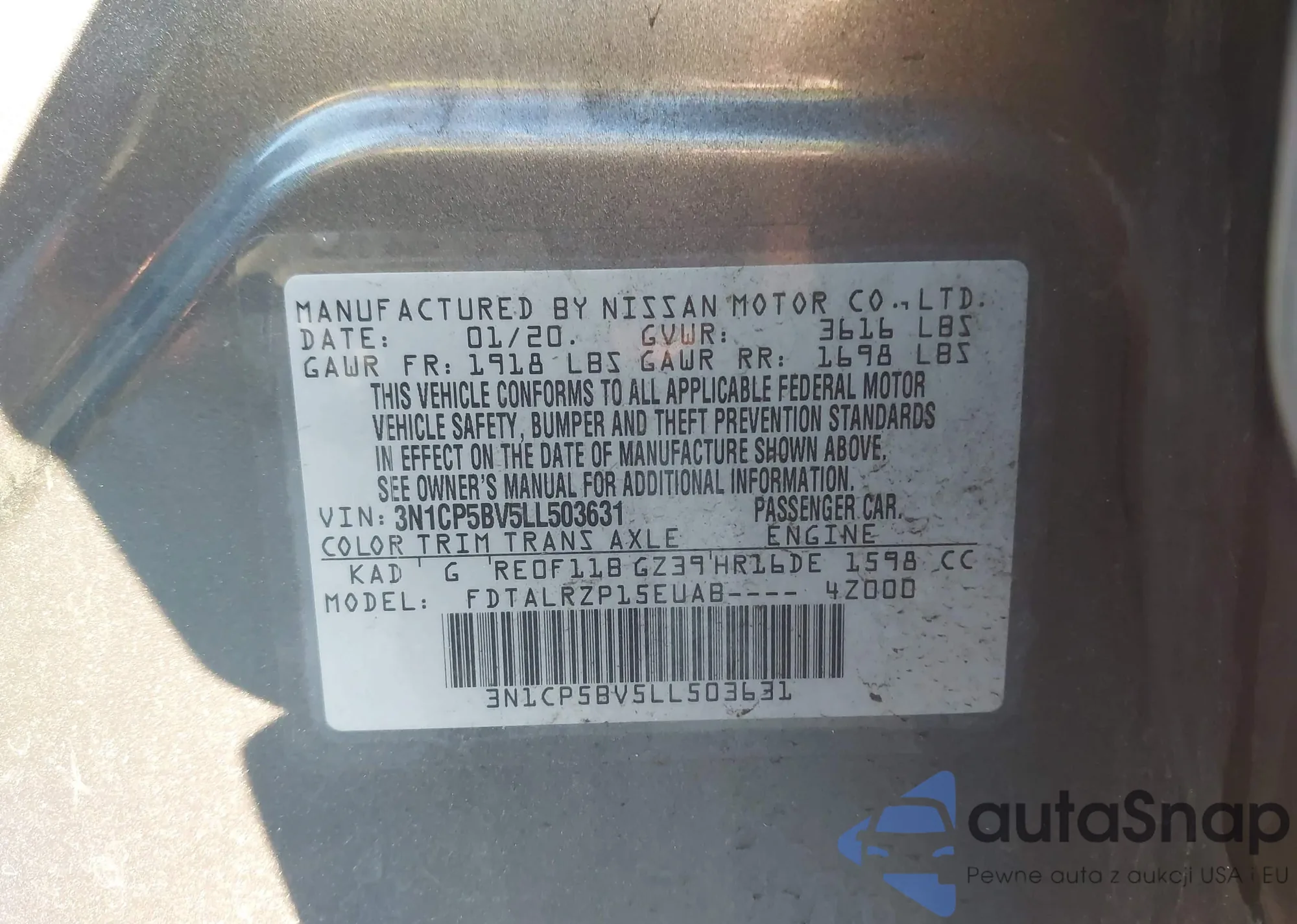 • VIN 3N1CP5BV5LL503631
