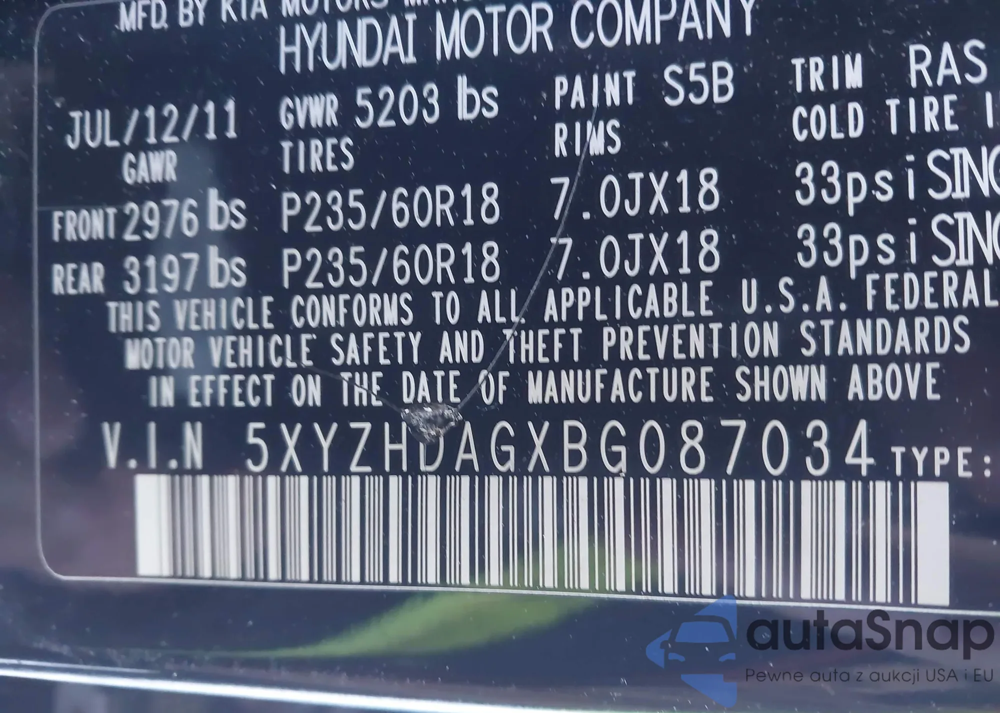 • VIN 5XYZHDAGXBG087034