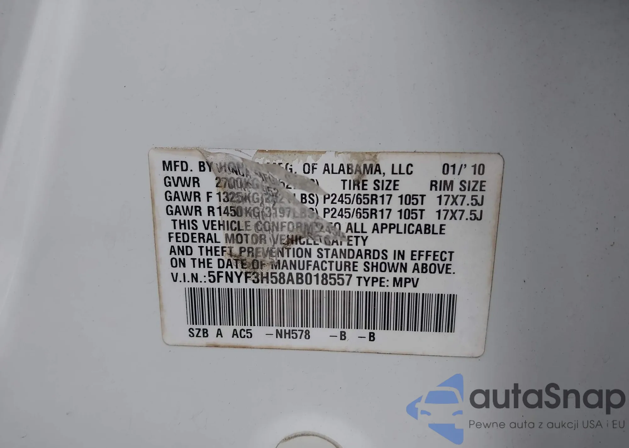 • VIN 2T3ZF4DV5BW054718