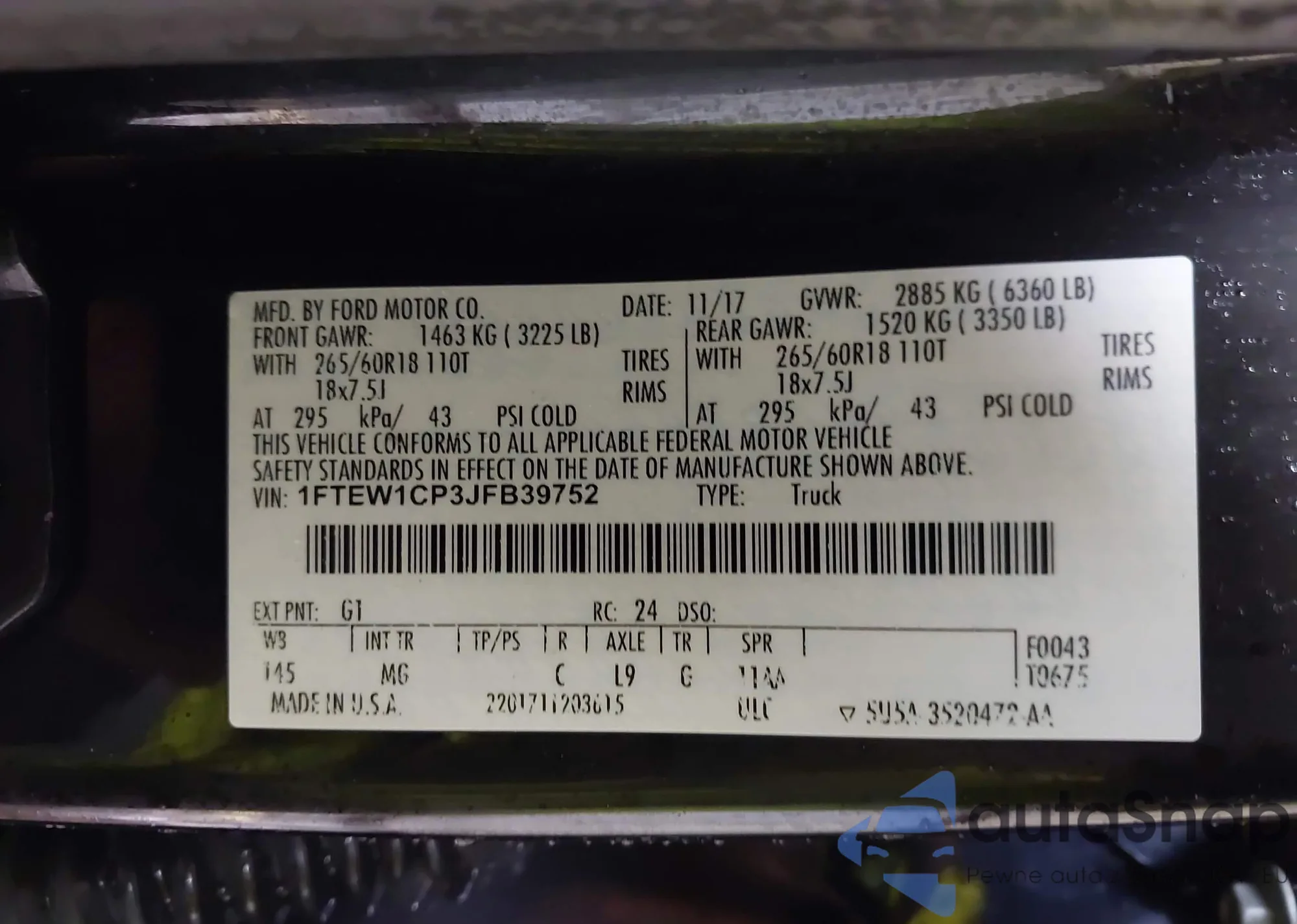 • VIN 1FTEW1C53KKE59385