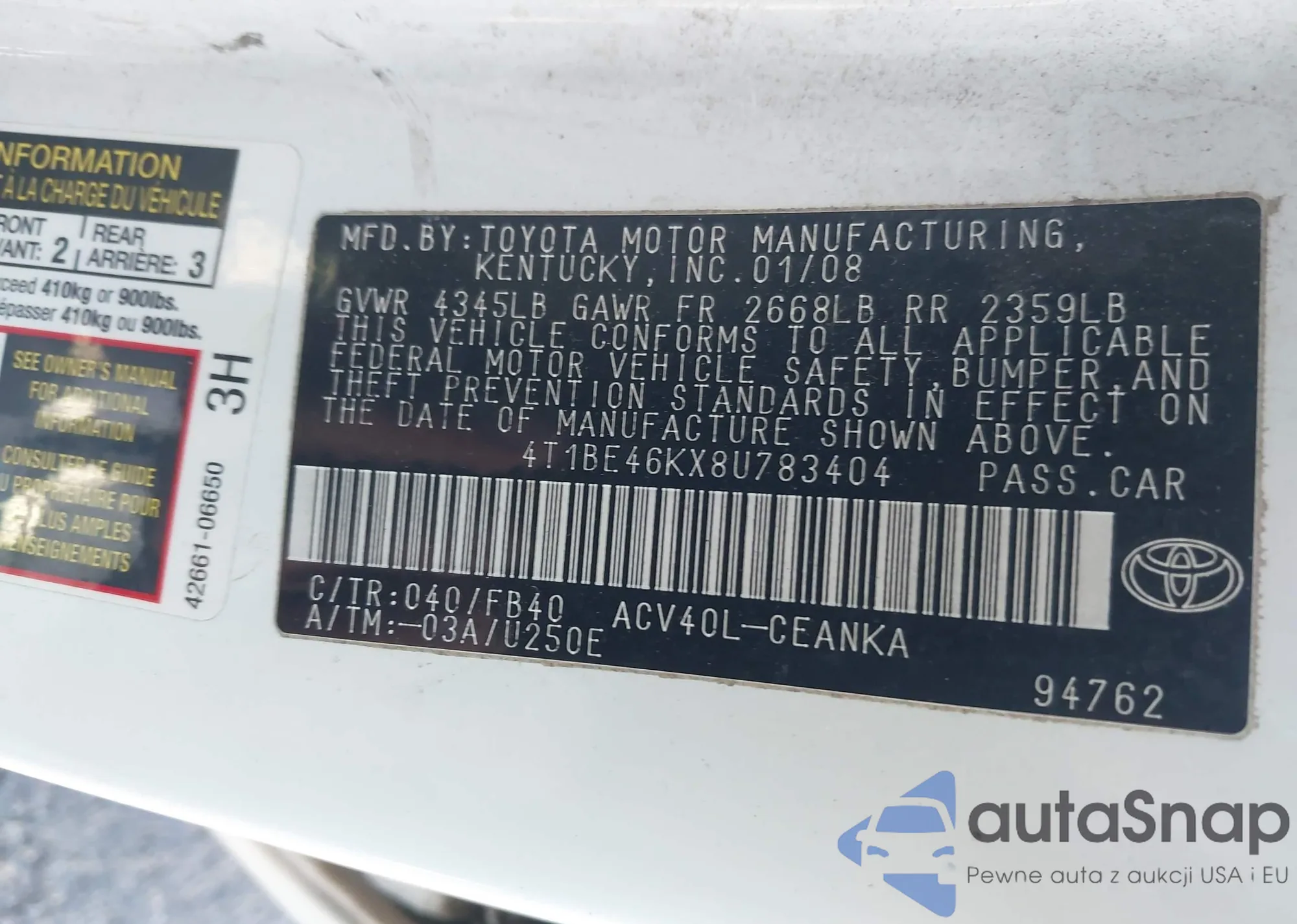 • VIN 4T1BE46KX8U783404