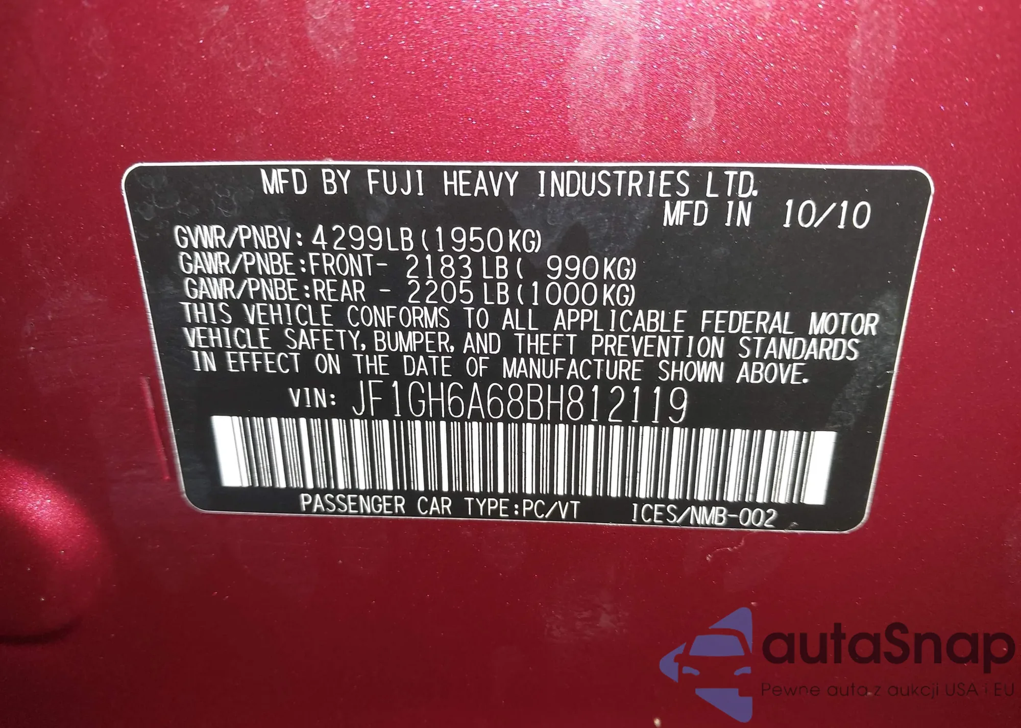 LOT: 43903053 VIN: JHMZE2H75AS007178