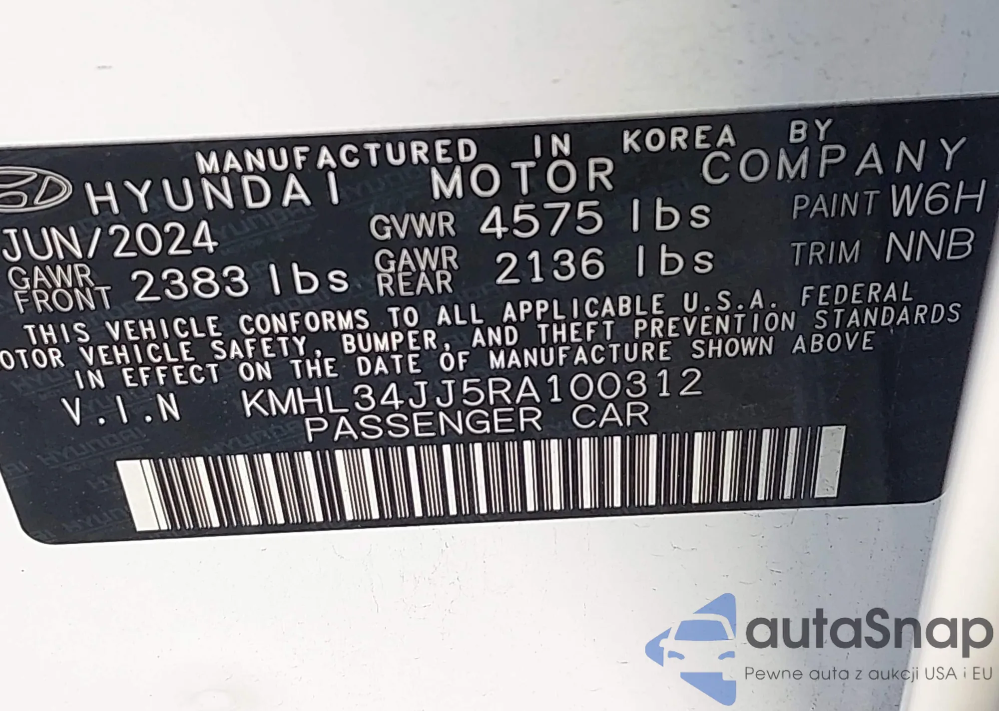 LOT: 43496261 VIN: KMHD35LE2DU103024