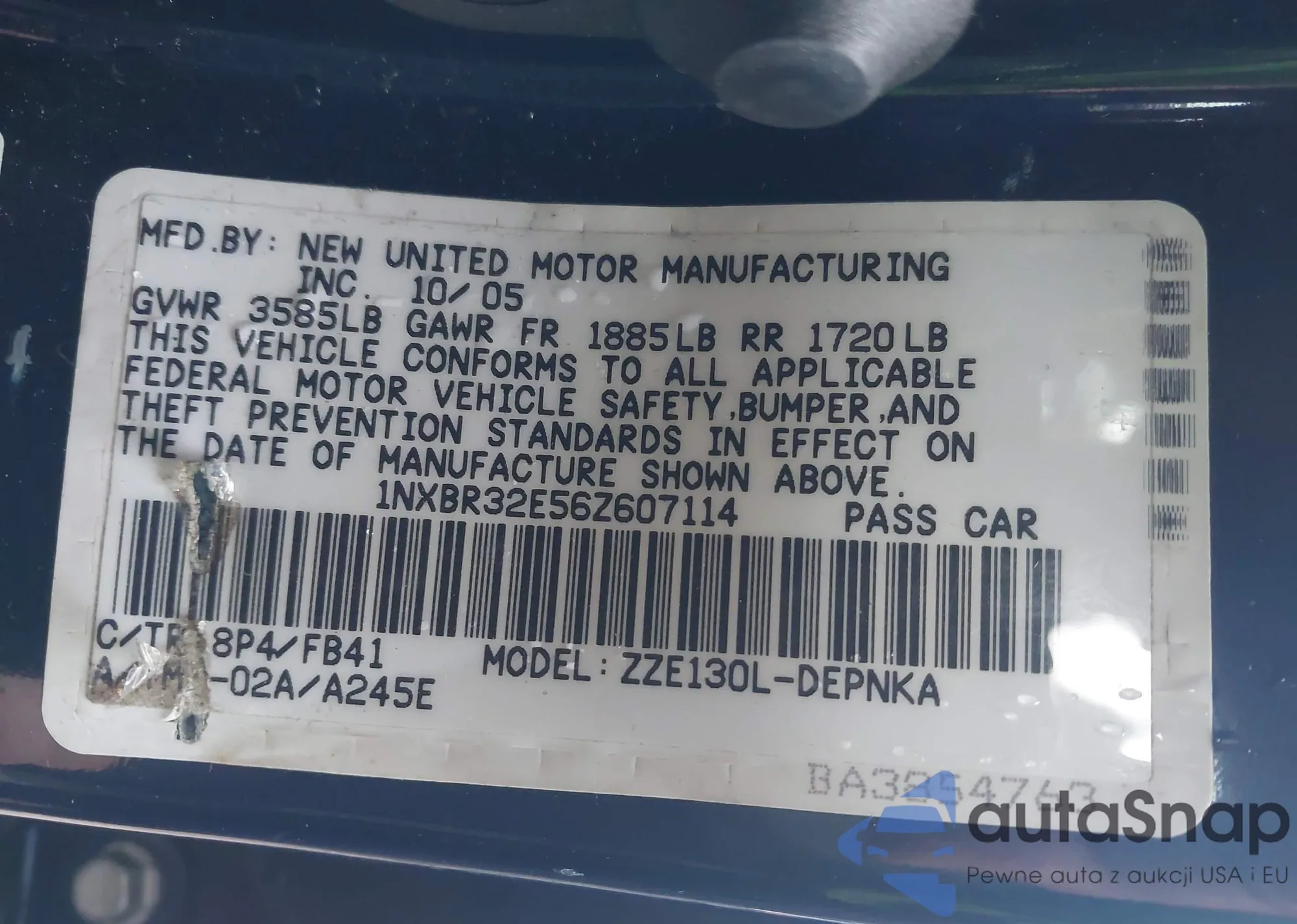 LOT: 43706643 VIN: 1NXBR32E56Z607114