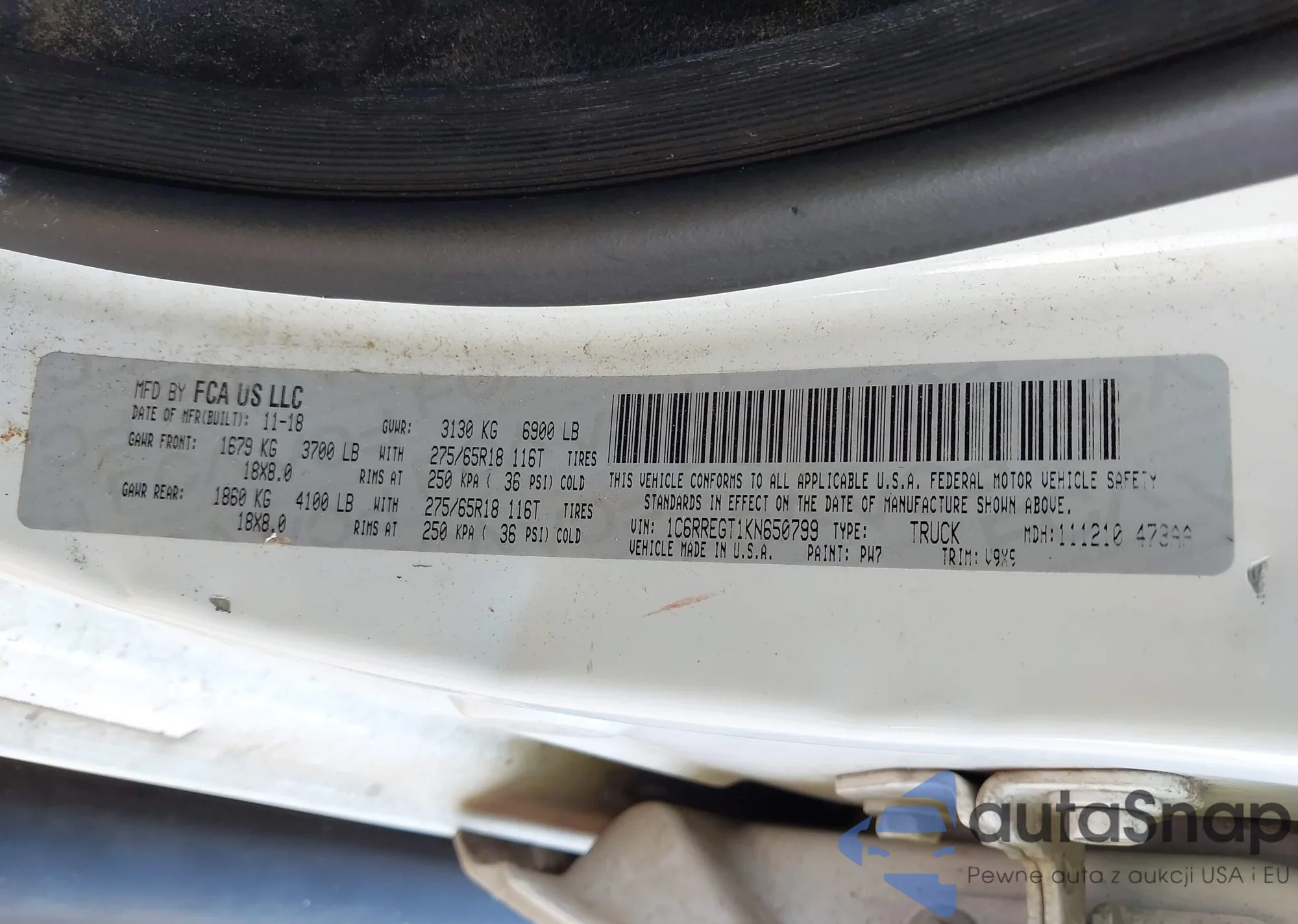 LOT: 43796369 VIN: 1C6RREGT1KN650799