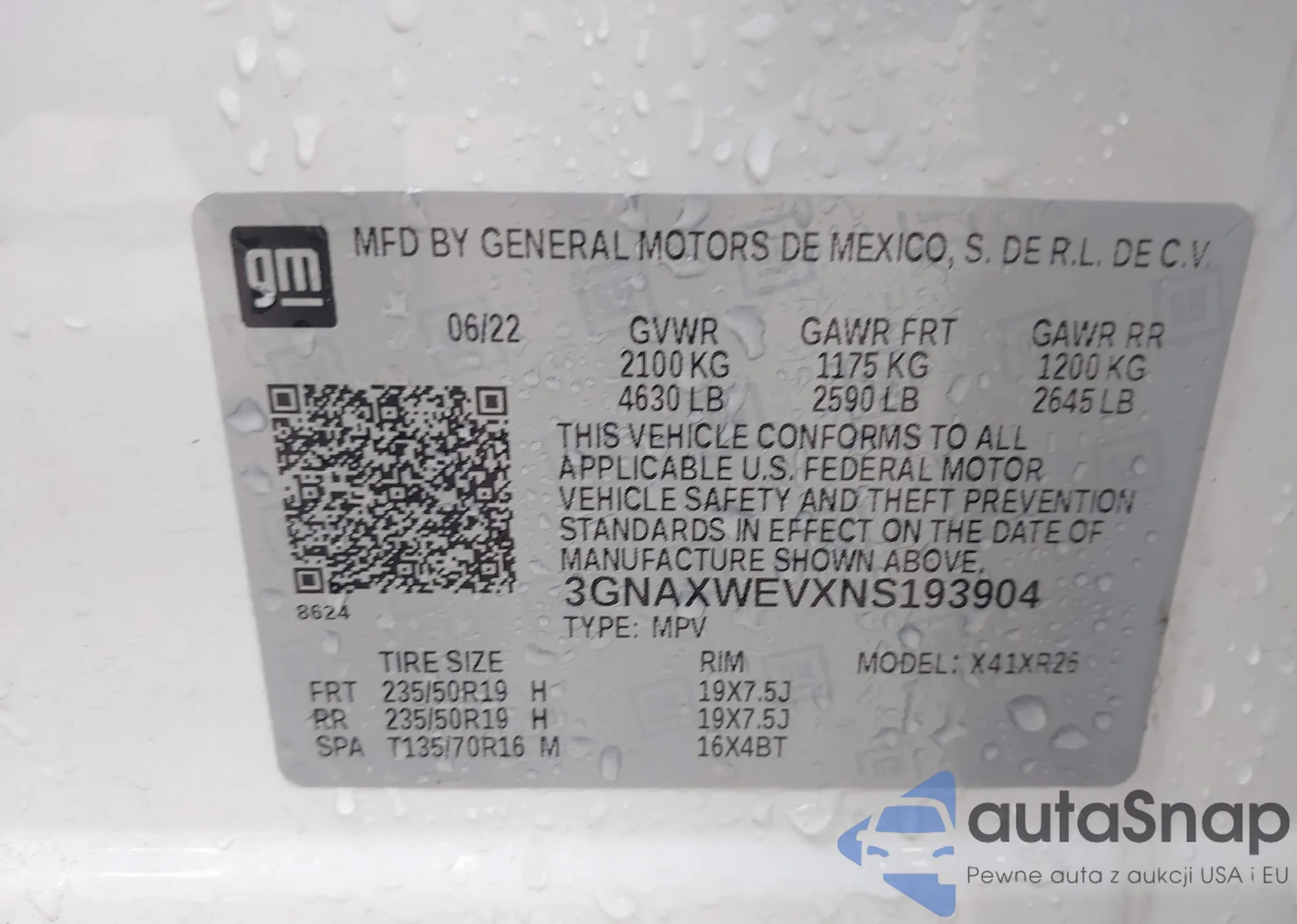 LOT: 43696133 VIN: KL79MVSL6SB017471