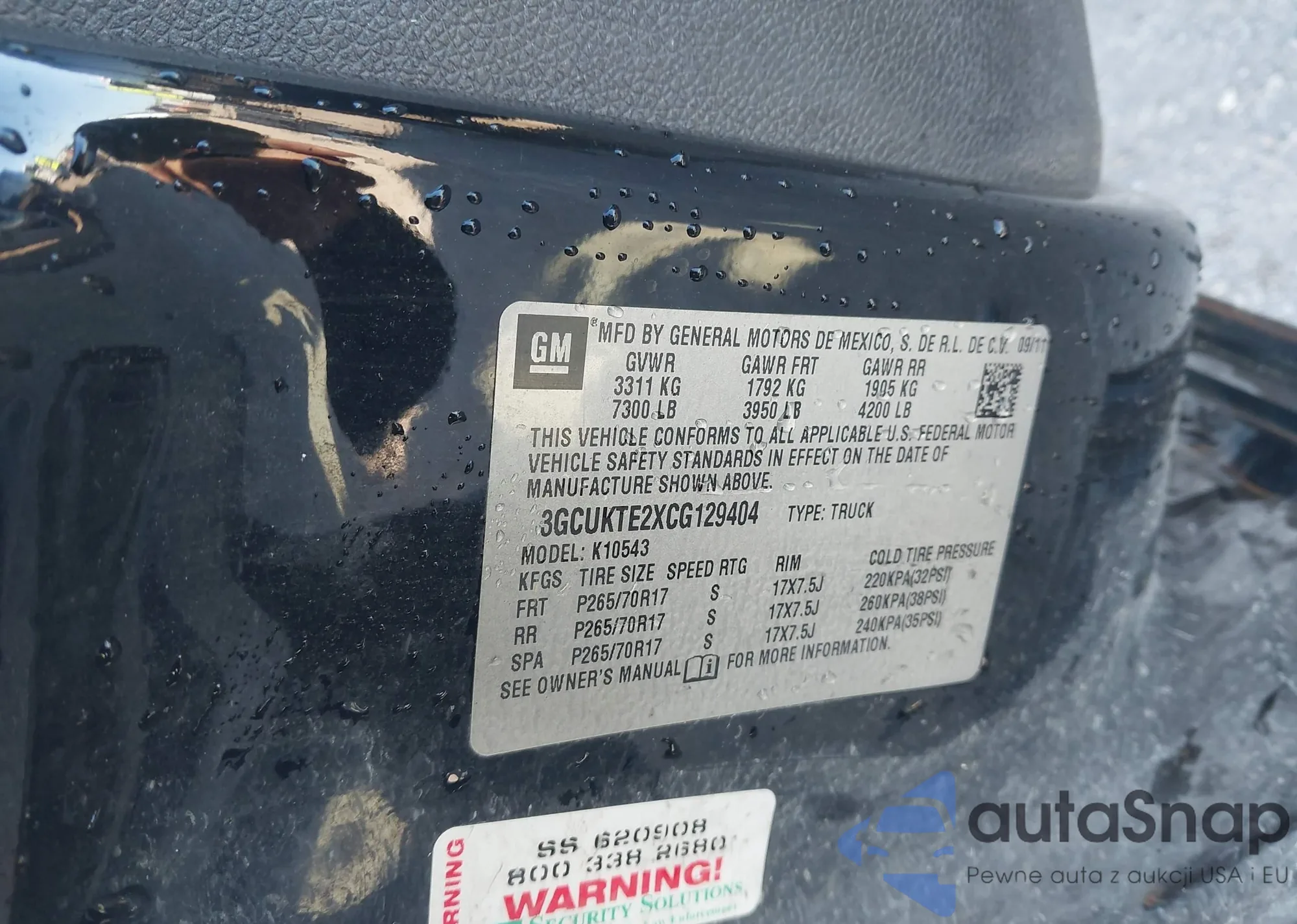• VIN 3GCUKTE2XCG129404