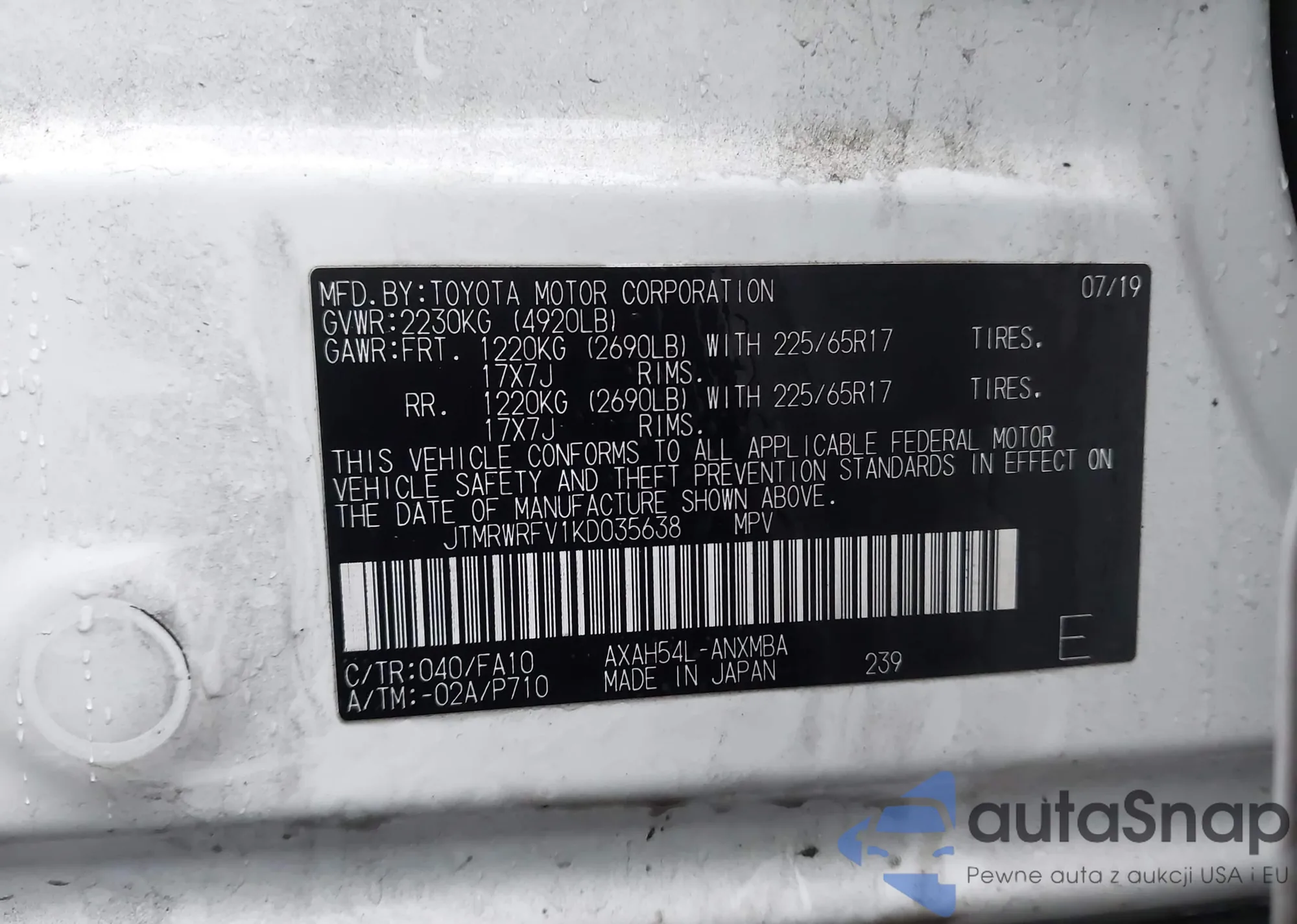 • VIN JTMRWRFV1KD035638