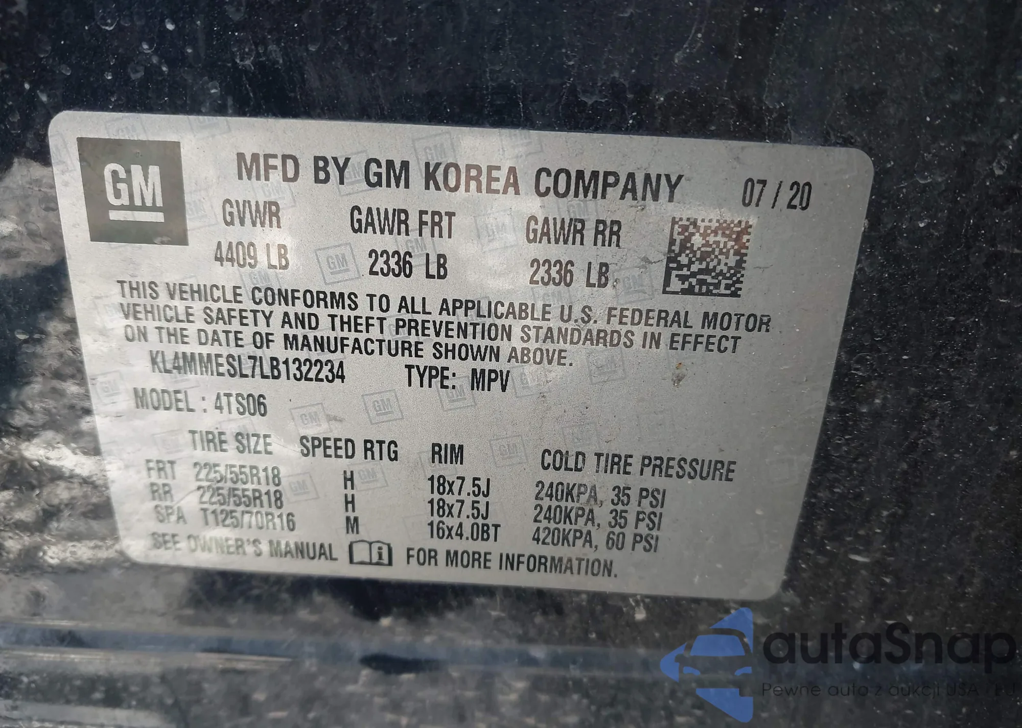 • VIN KL4MMESL7LB132234