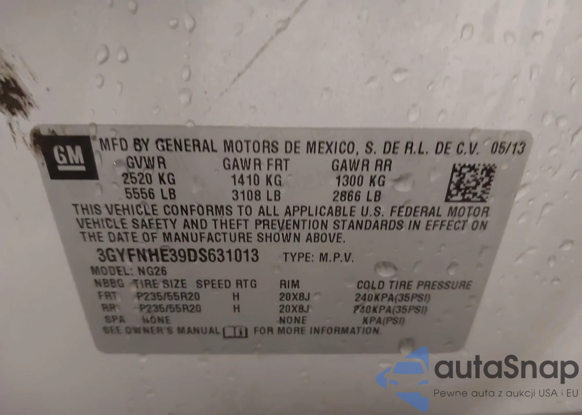 LOT: 43930529 VIN: 3GYFNHE39DS631013