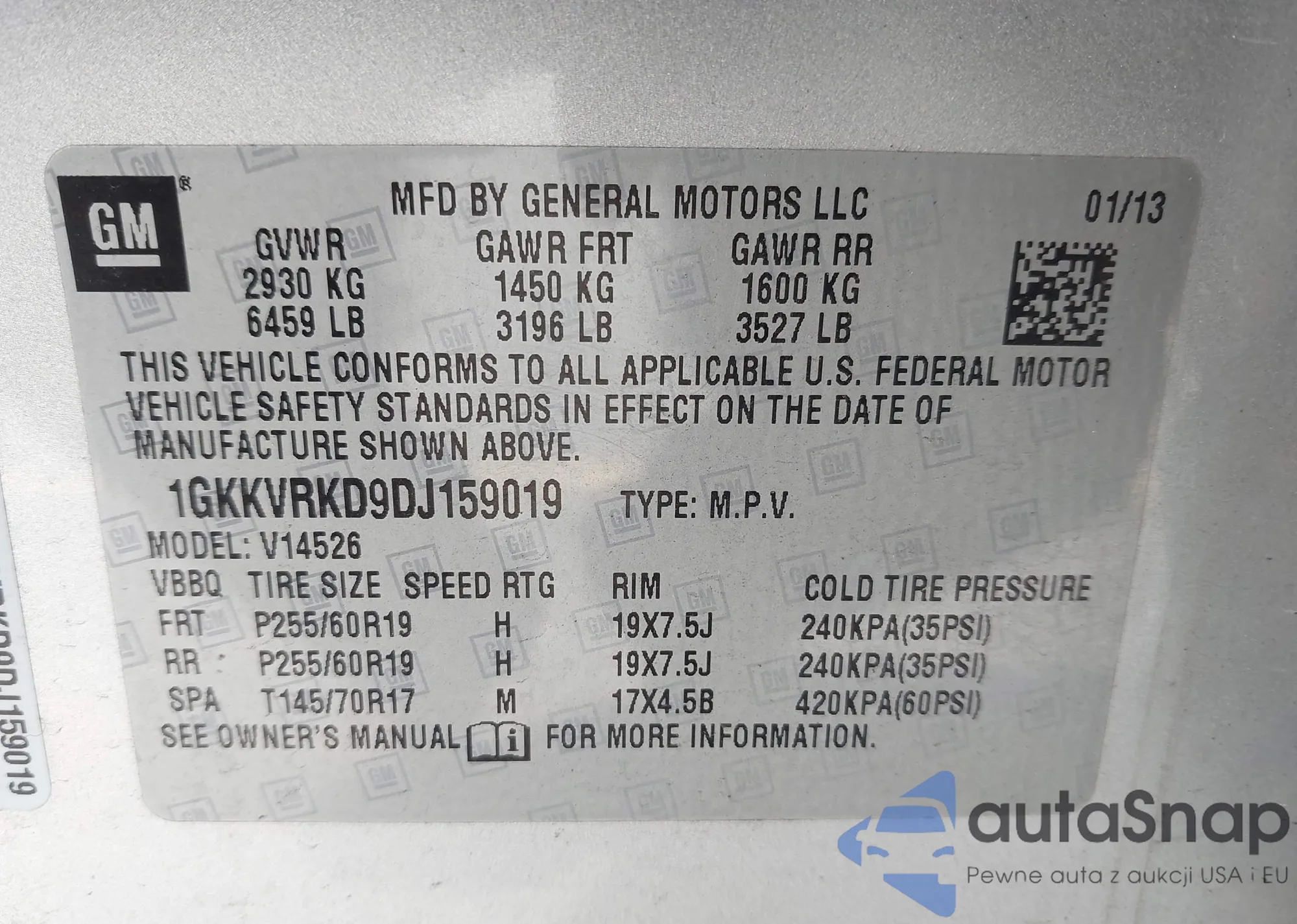 • VIN 1GKKVRKD9DJ159019