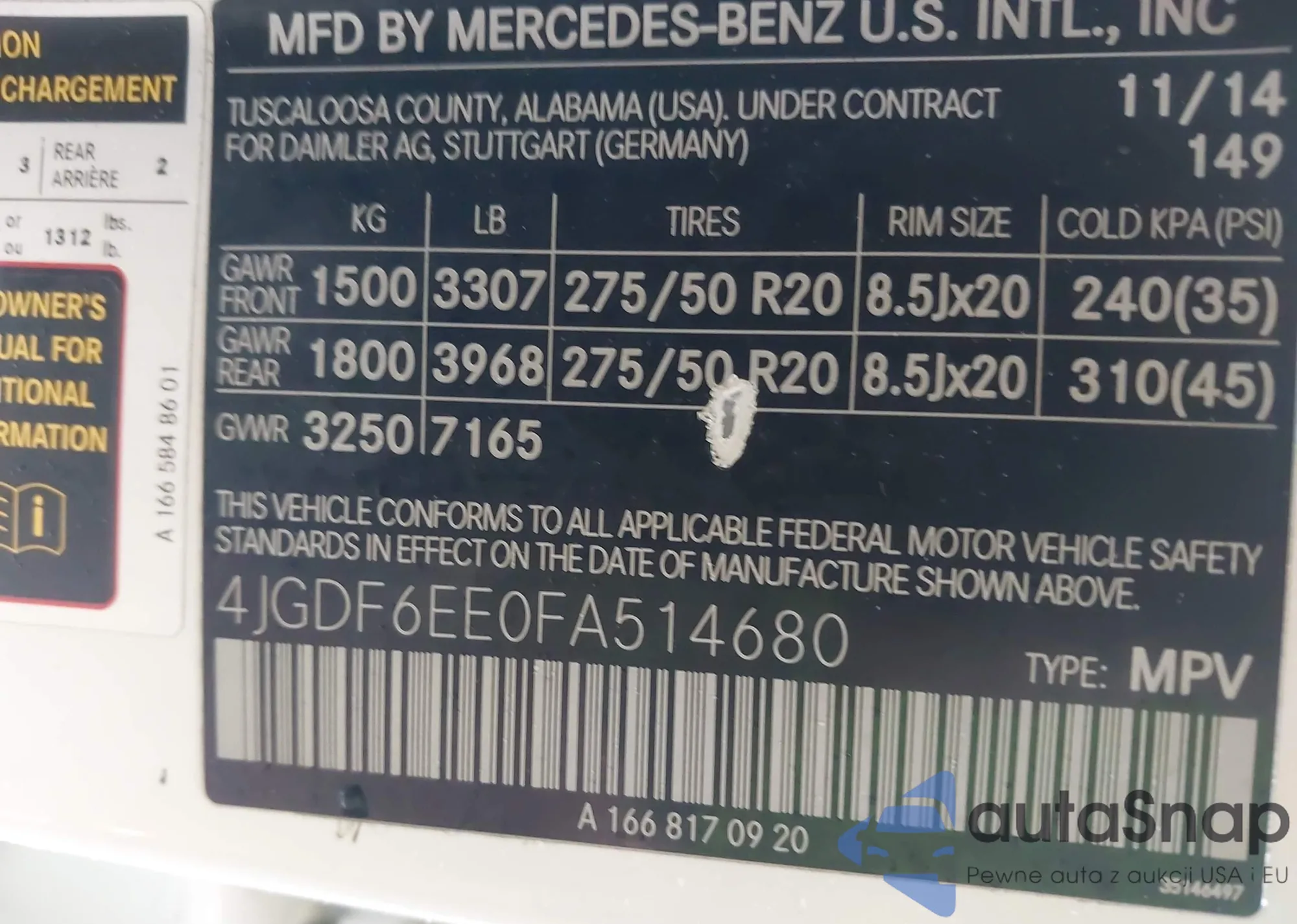 • VIN 4JGDF6EE0FA514680