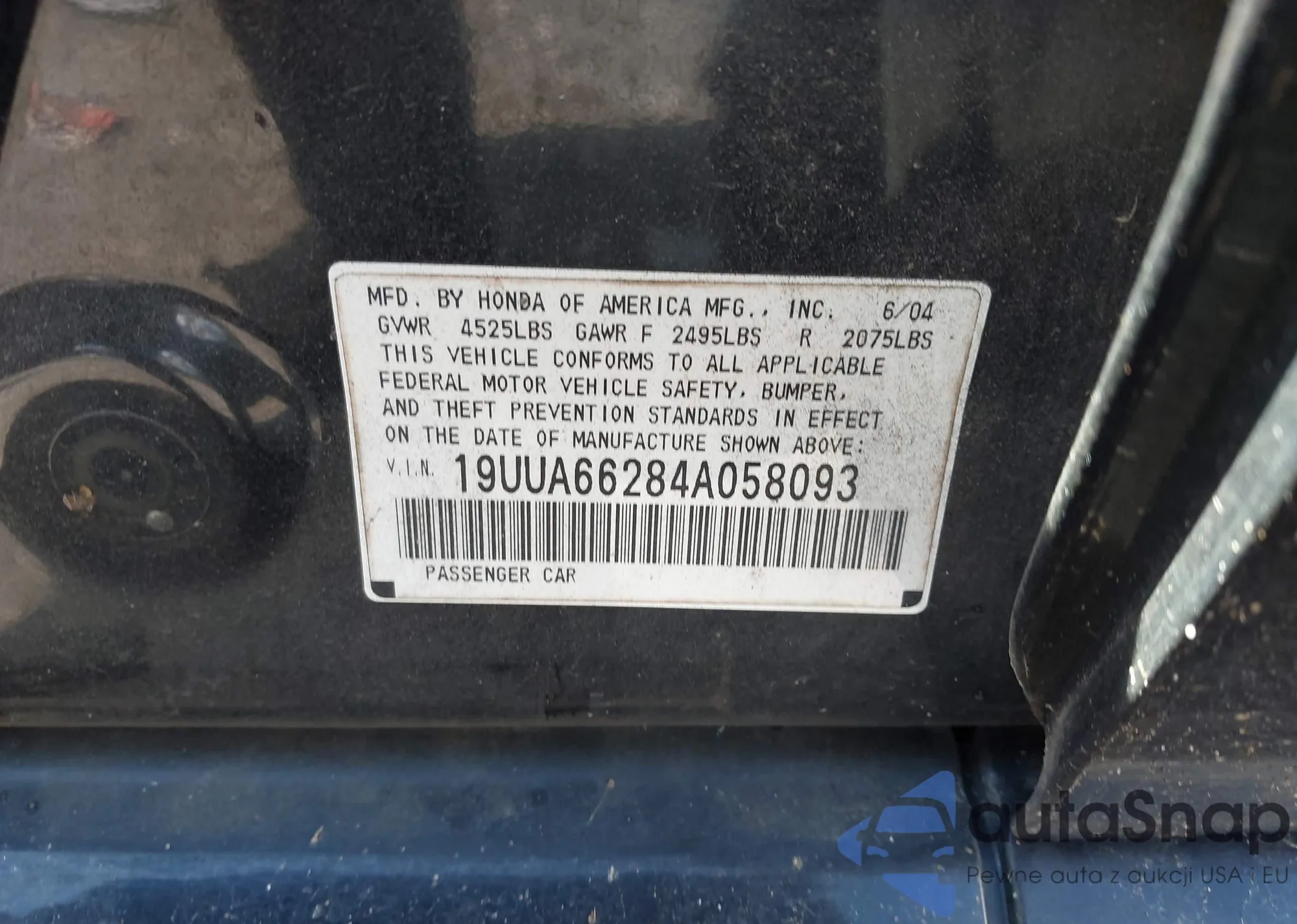 • VIN 19UUA66284A058093