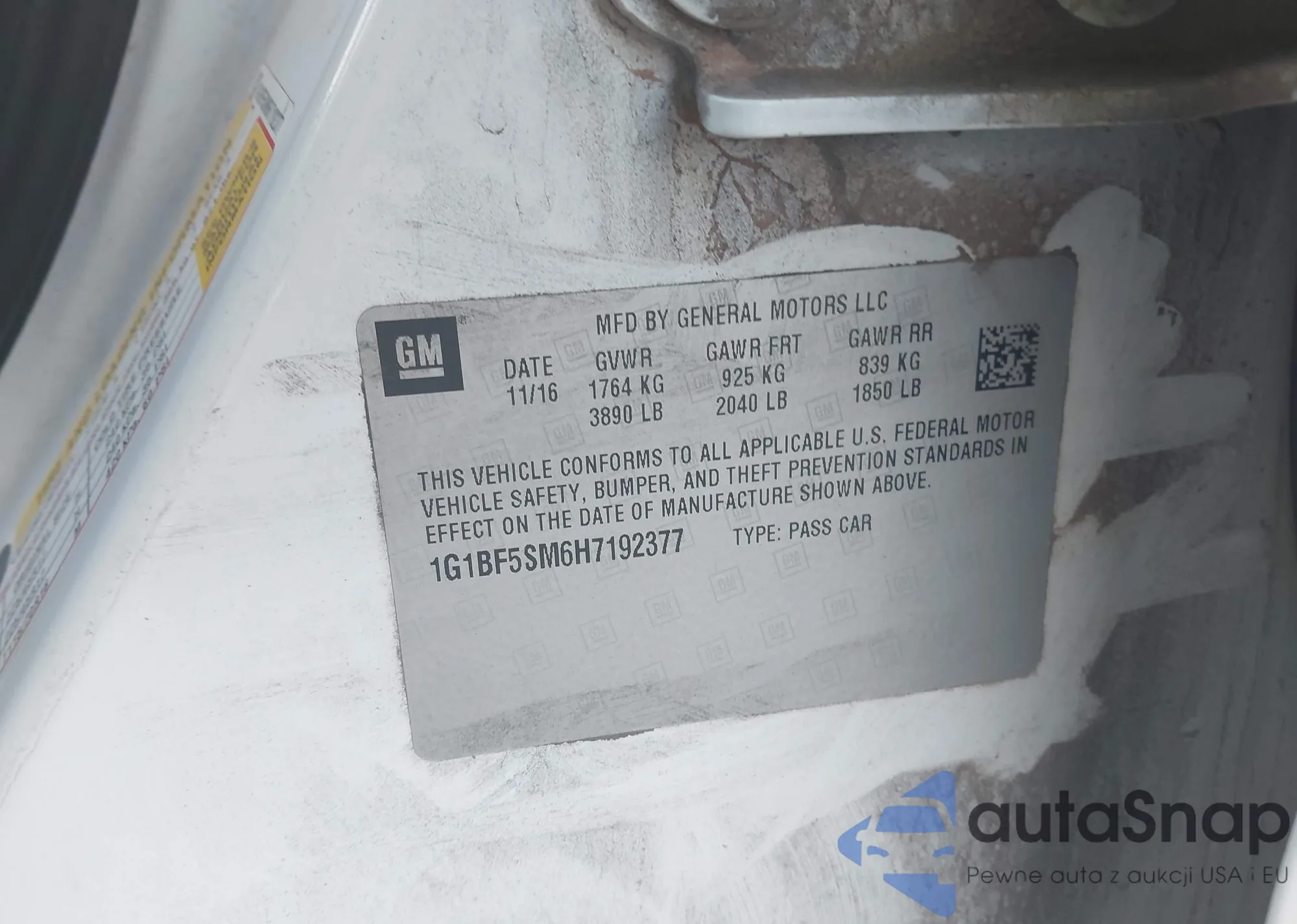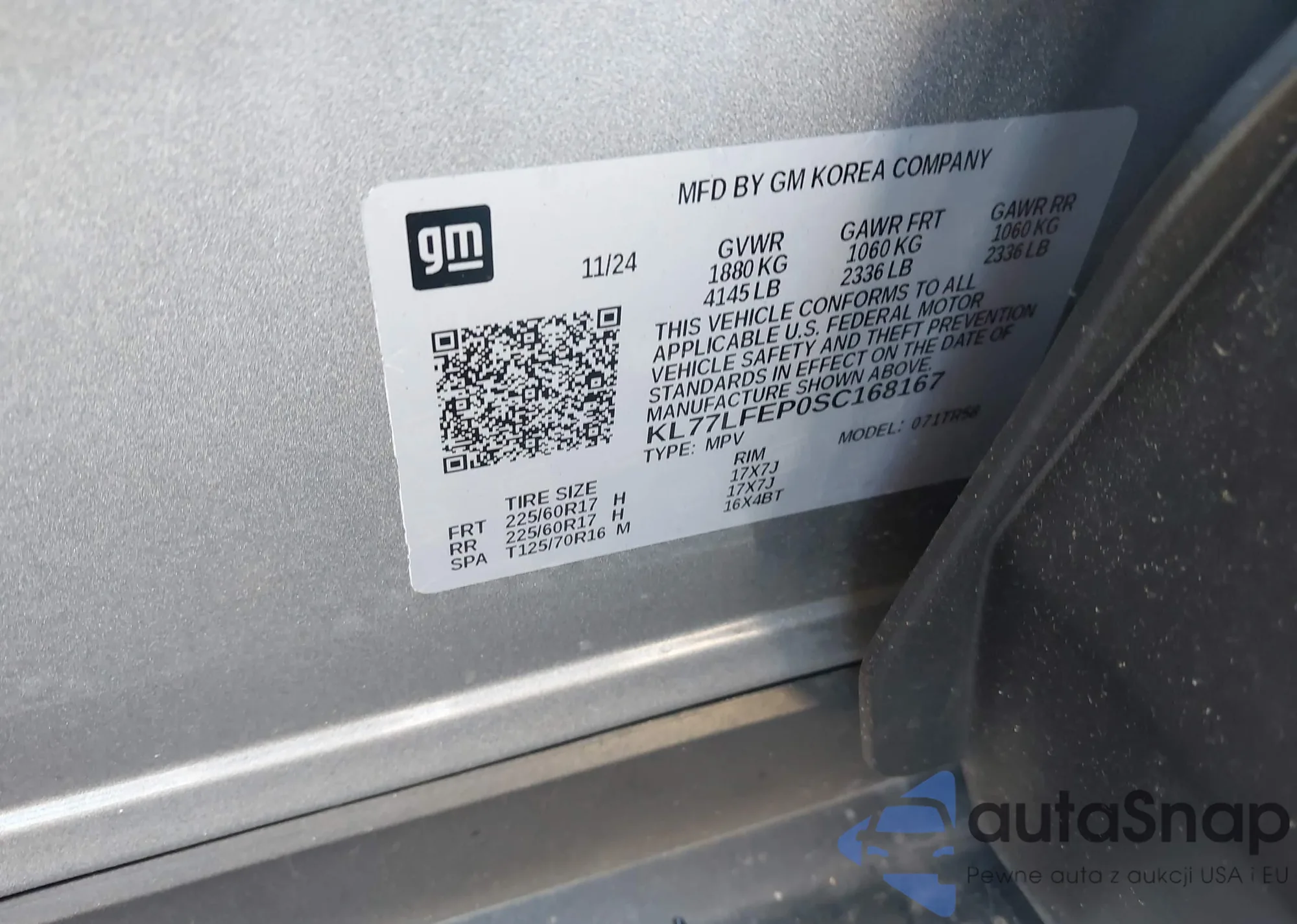 • VIN KL77LFEP0SC168167