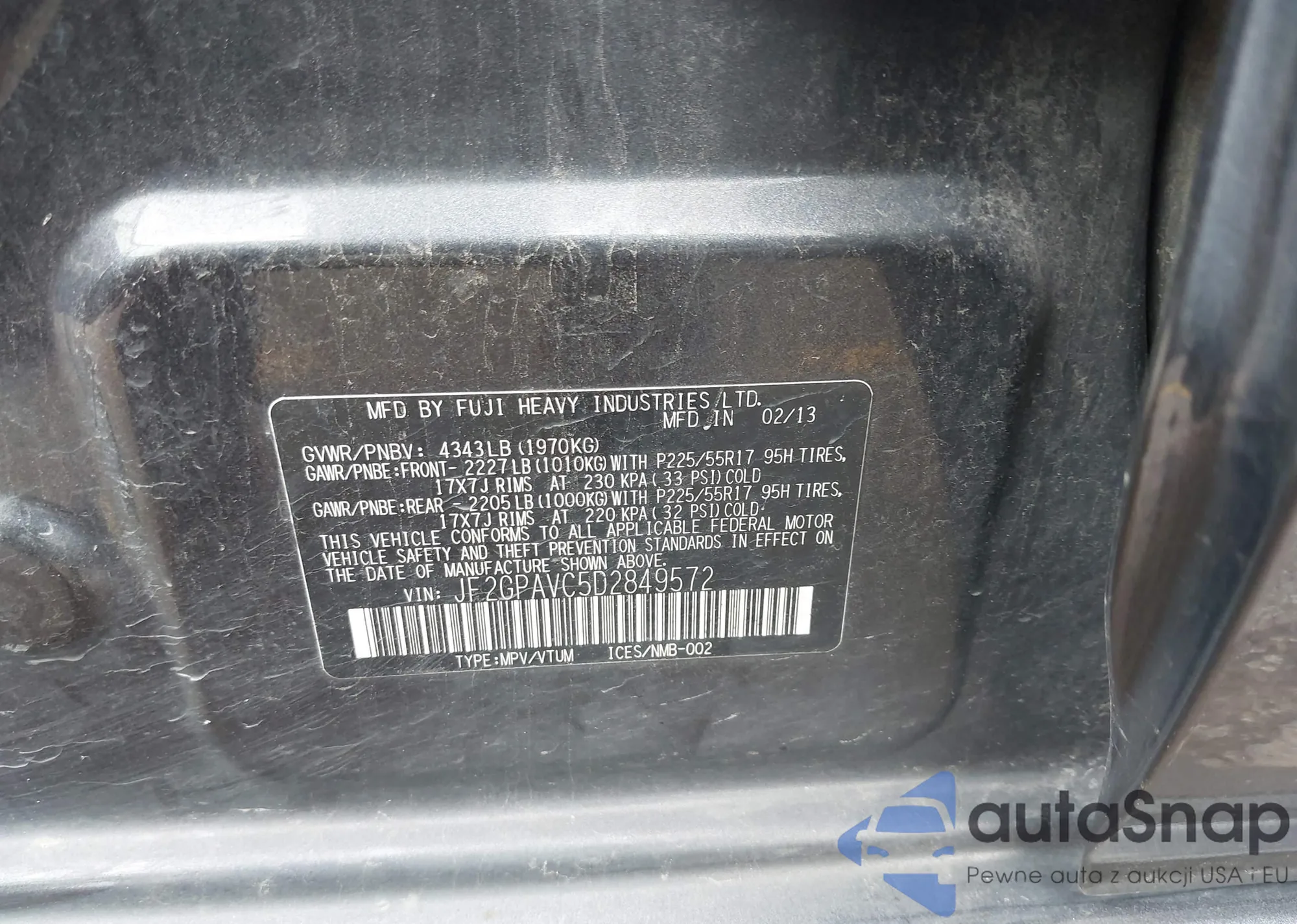 LOT: 39797058 VIN: JF2GPAVC5D2849572