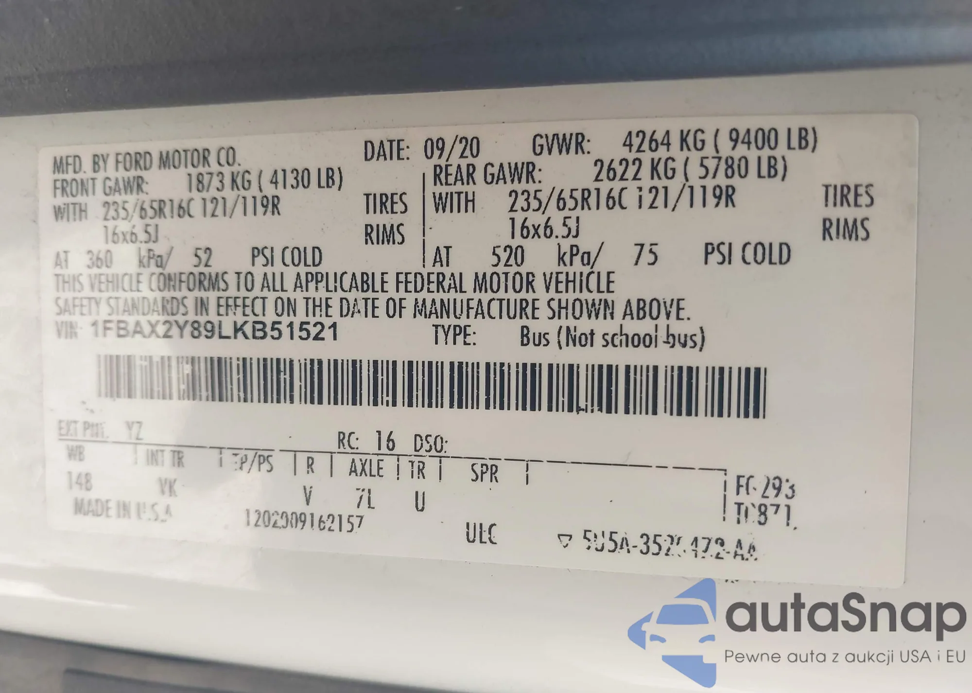 • VIN 1FBAX2Y89LKB51521