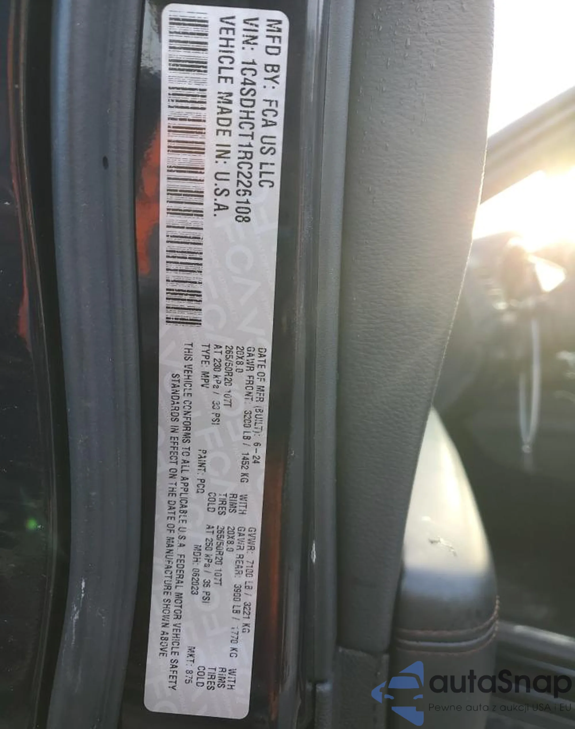 • VIN 1C4SDHCT1RC226108