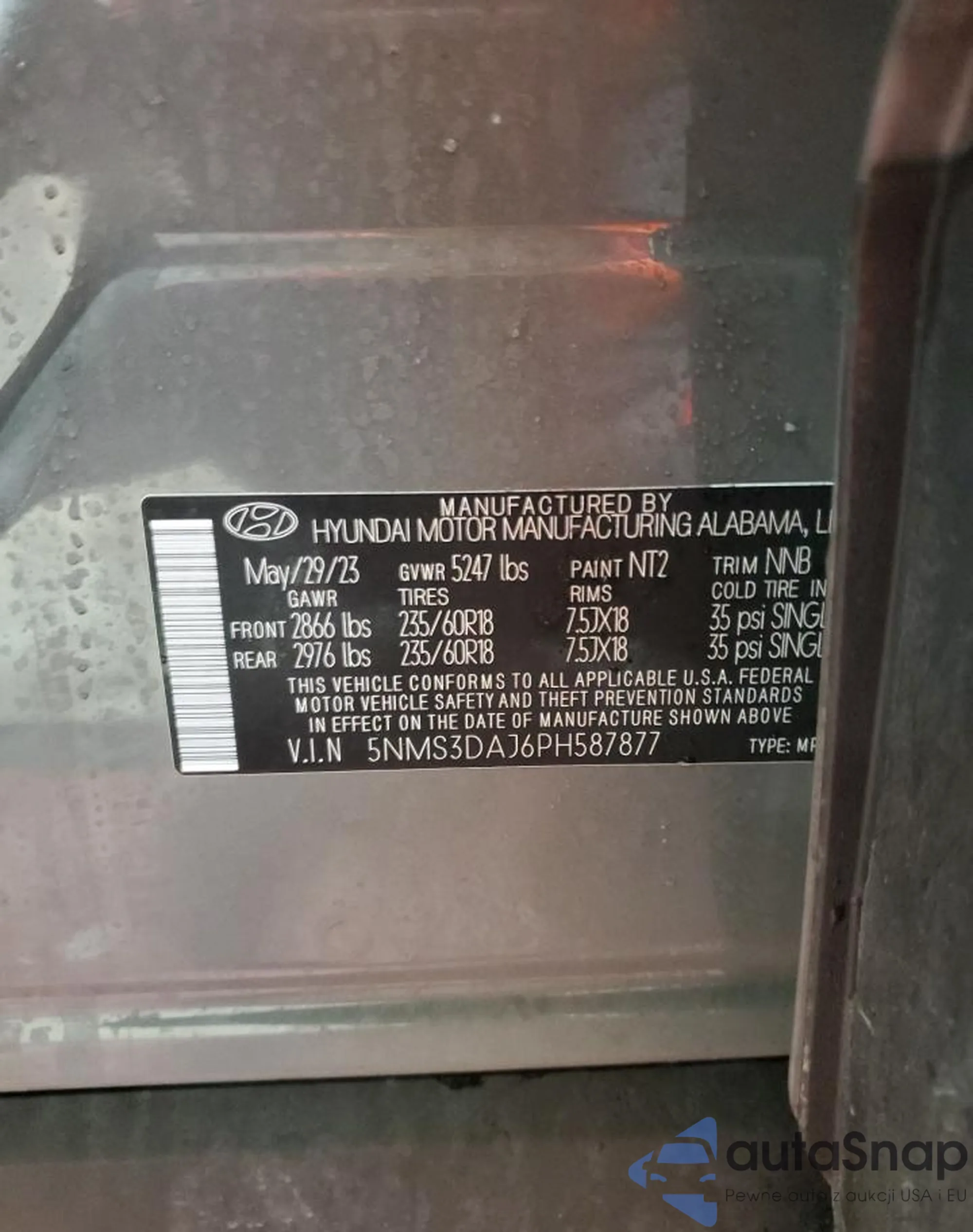 • VIN 5NMS3DAJ6PH587877