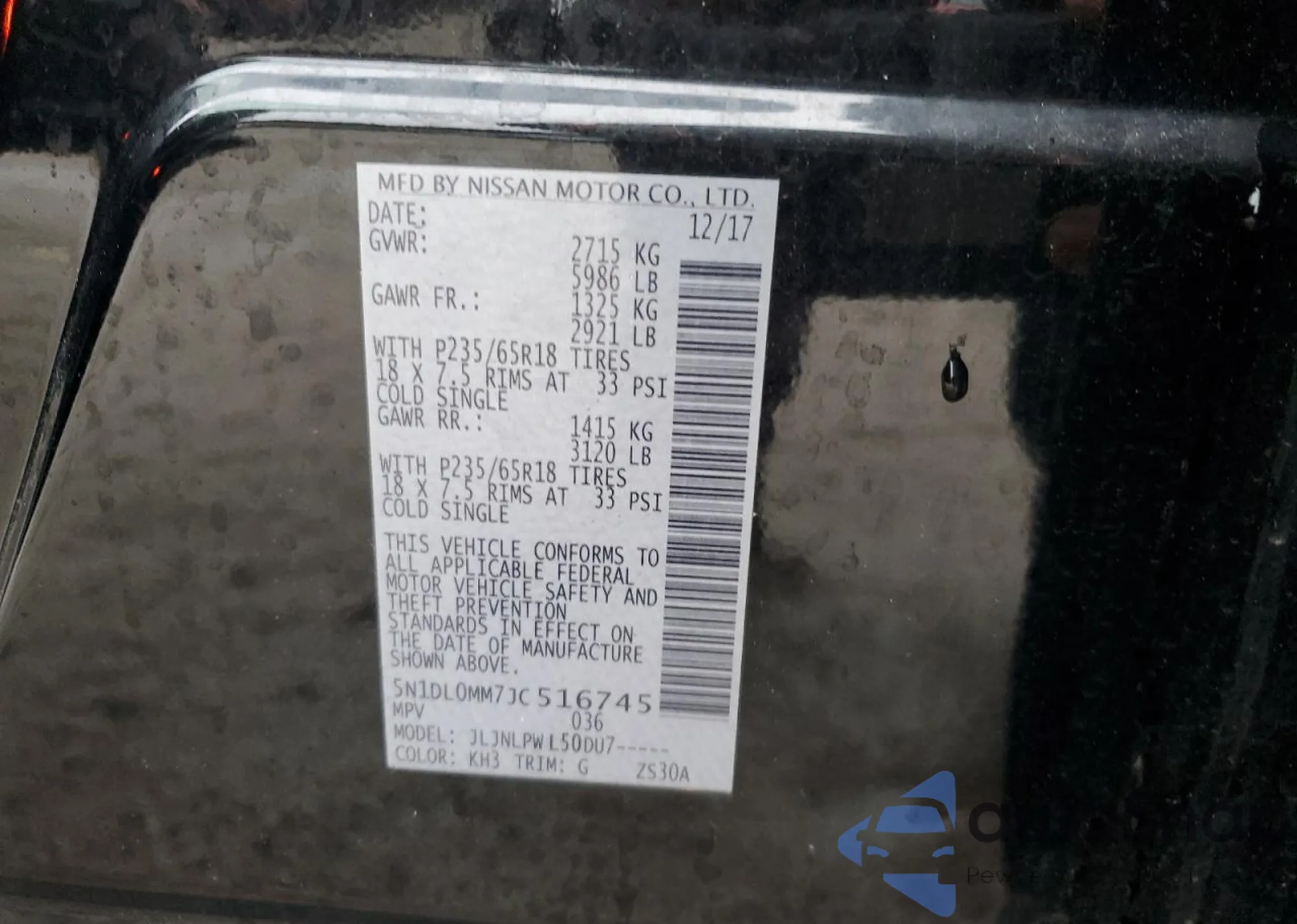 • VIN 5N1DL0MM7JC516745