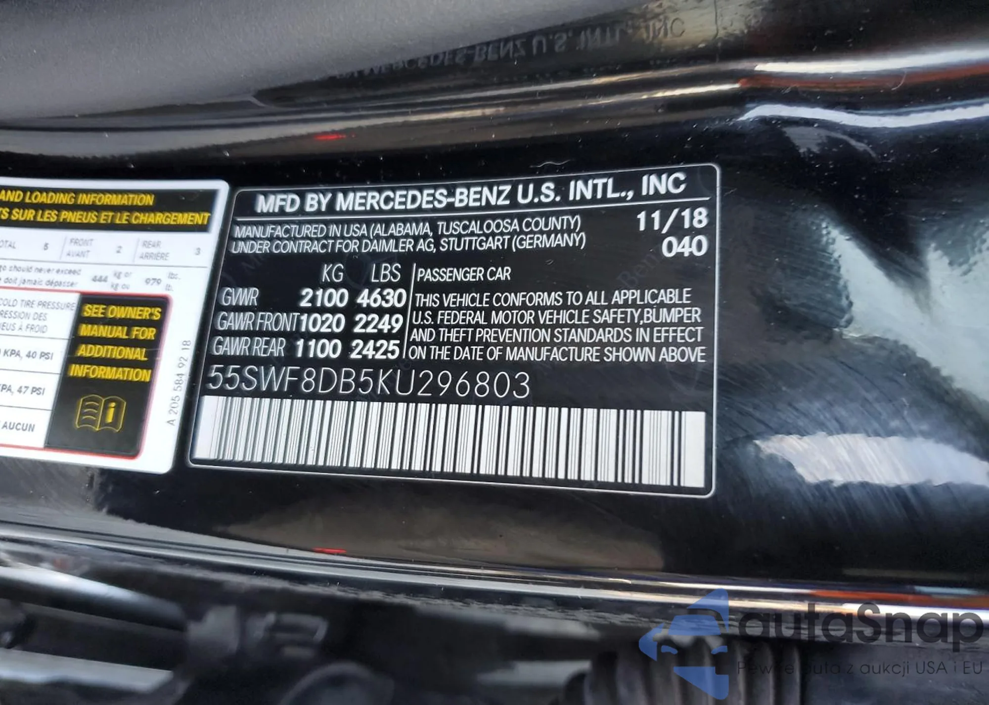 • VIN 55SWF8DB5KU296803