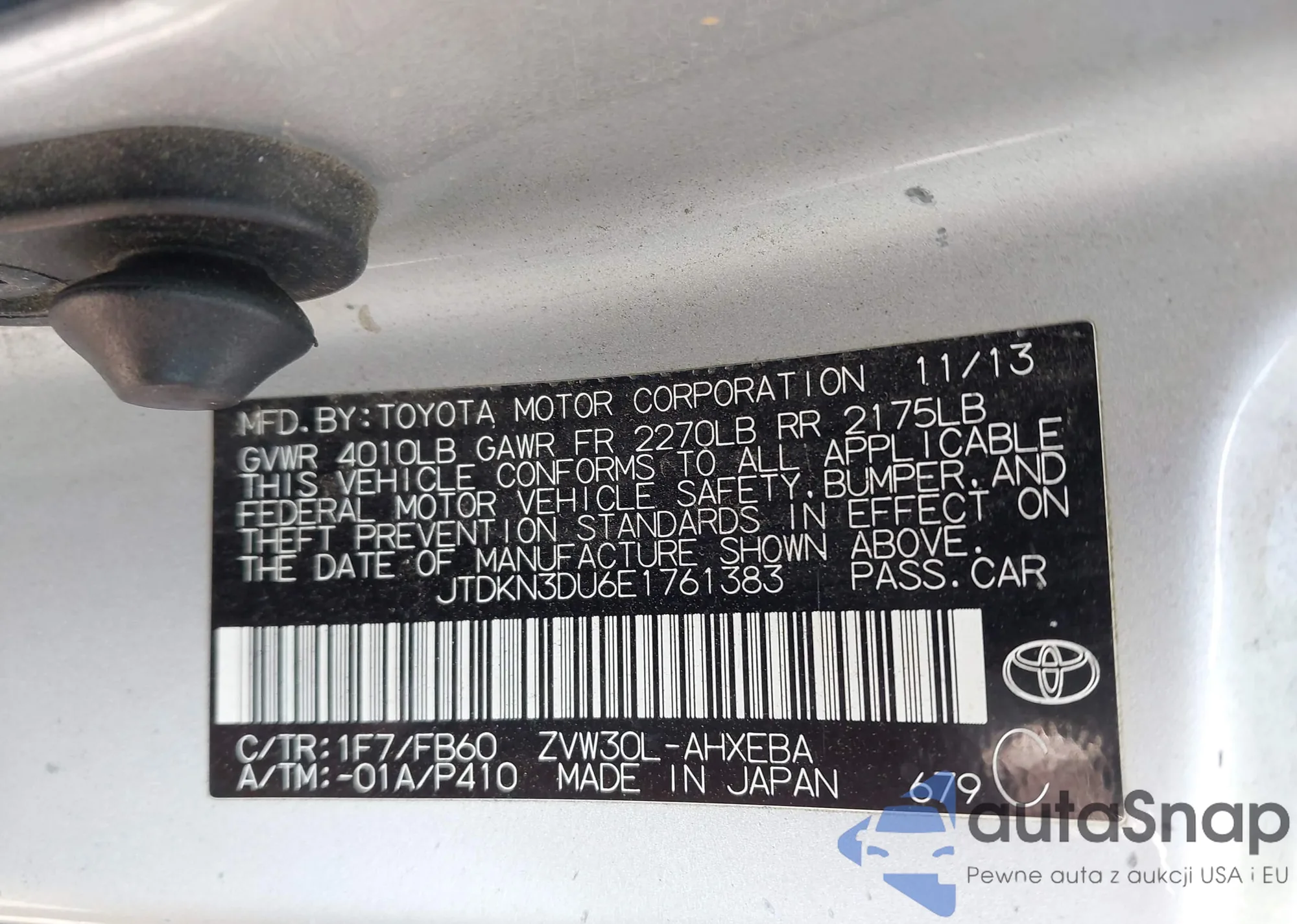 LOT: 42775723 VIN: JTDKN3DU6E1761383