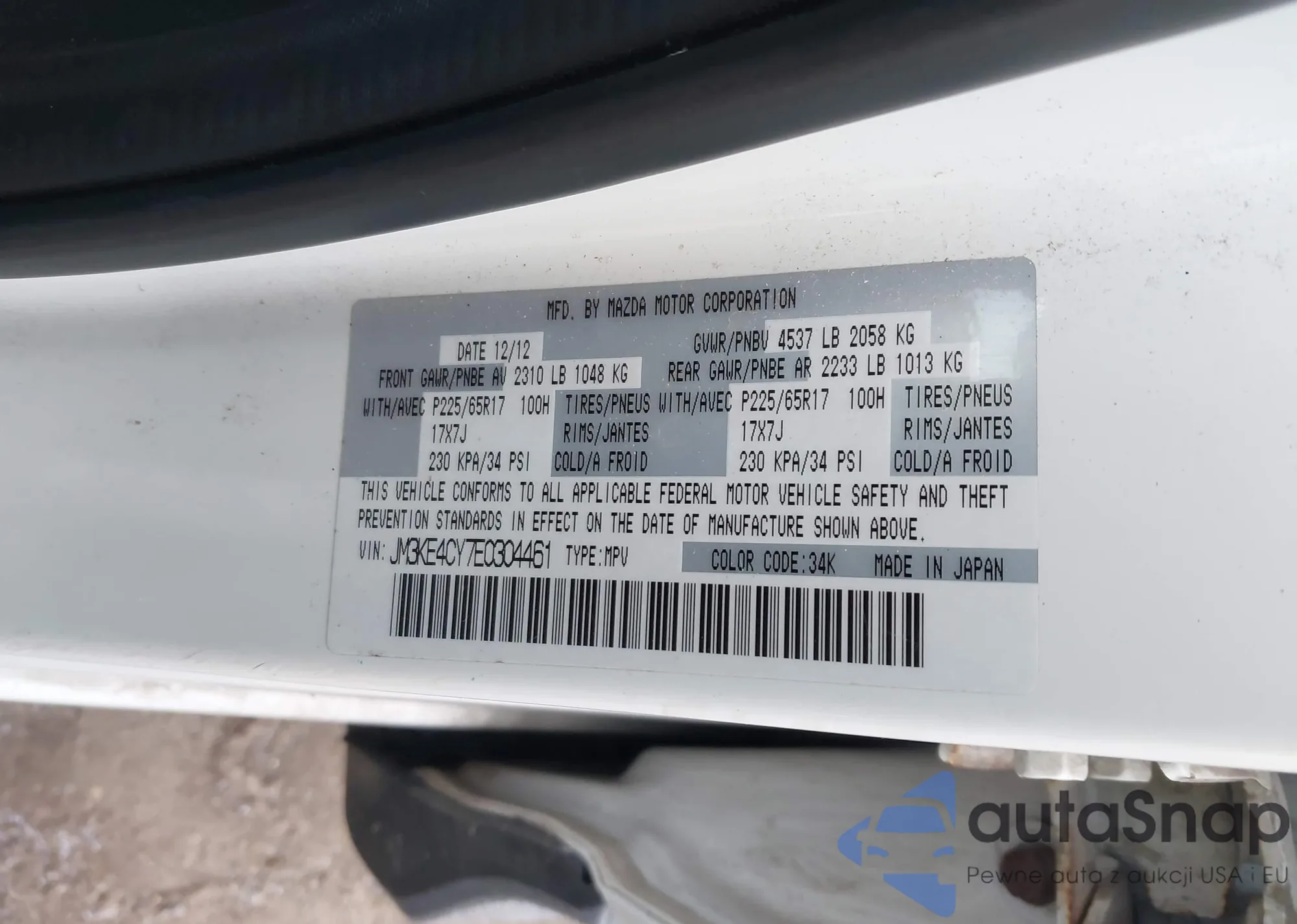 LOT: 43977651 VIN: JM3KE4CY7E0304461