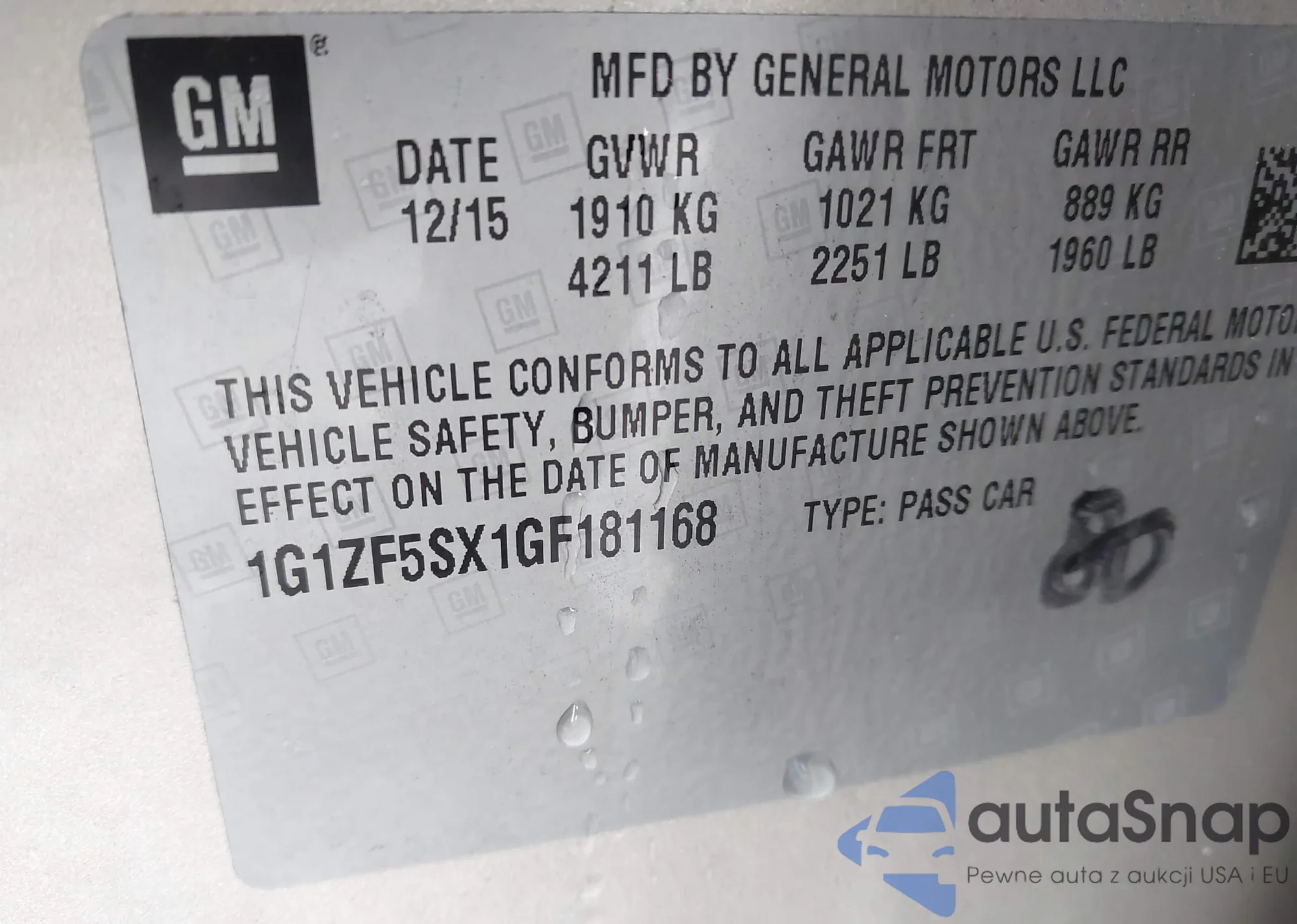 • VIN 1G1ZF5SX1GF181168
