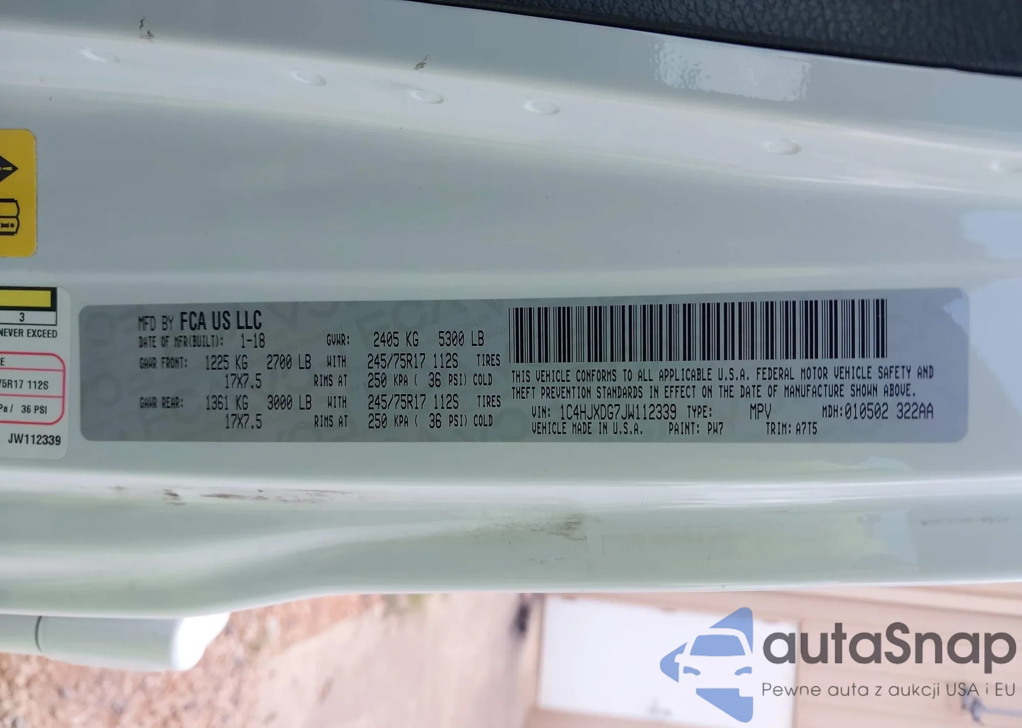 • VIN 1C4HJXDG7JW112339