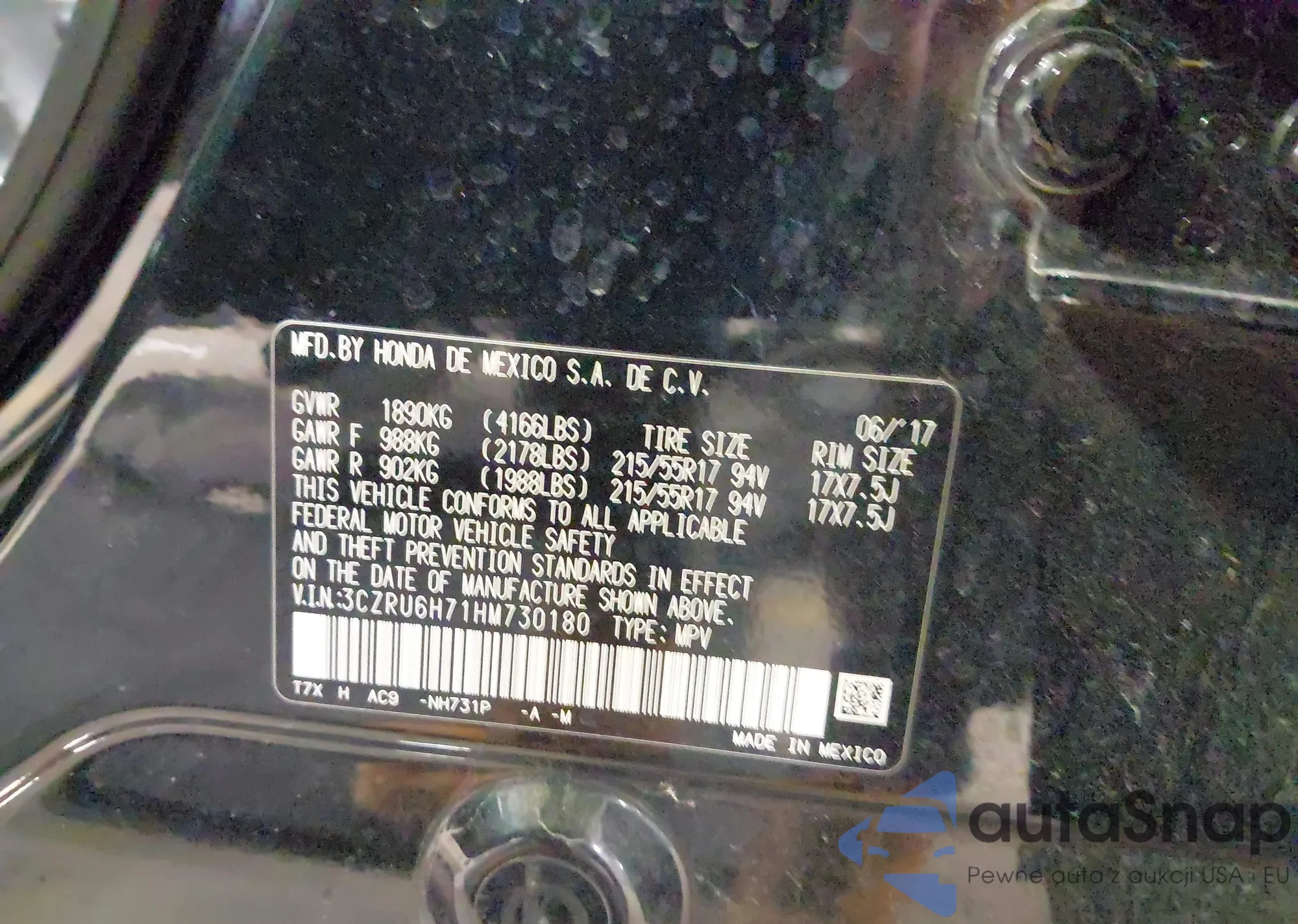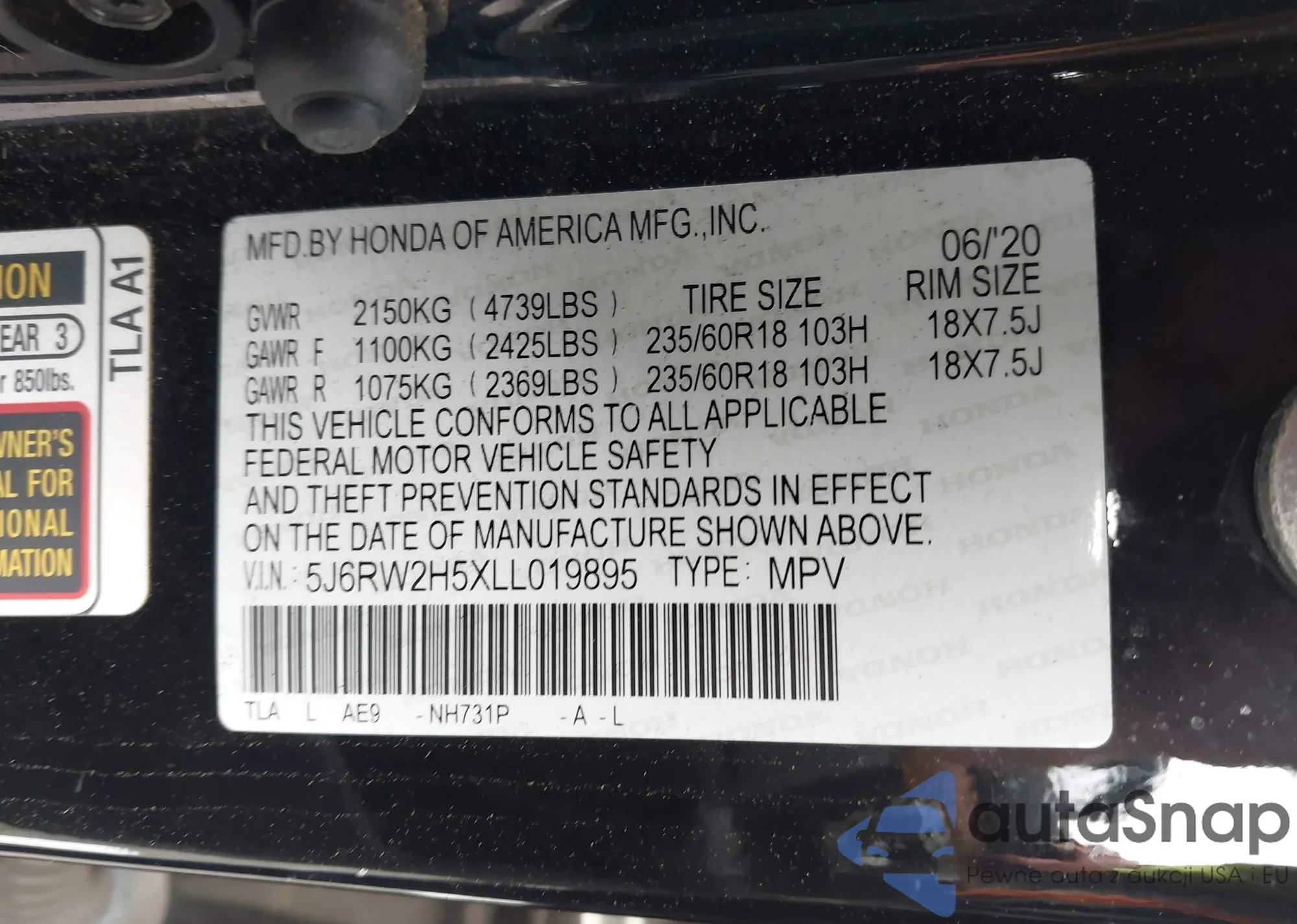 • VIN 5J6RW2H5XLL019895