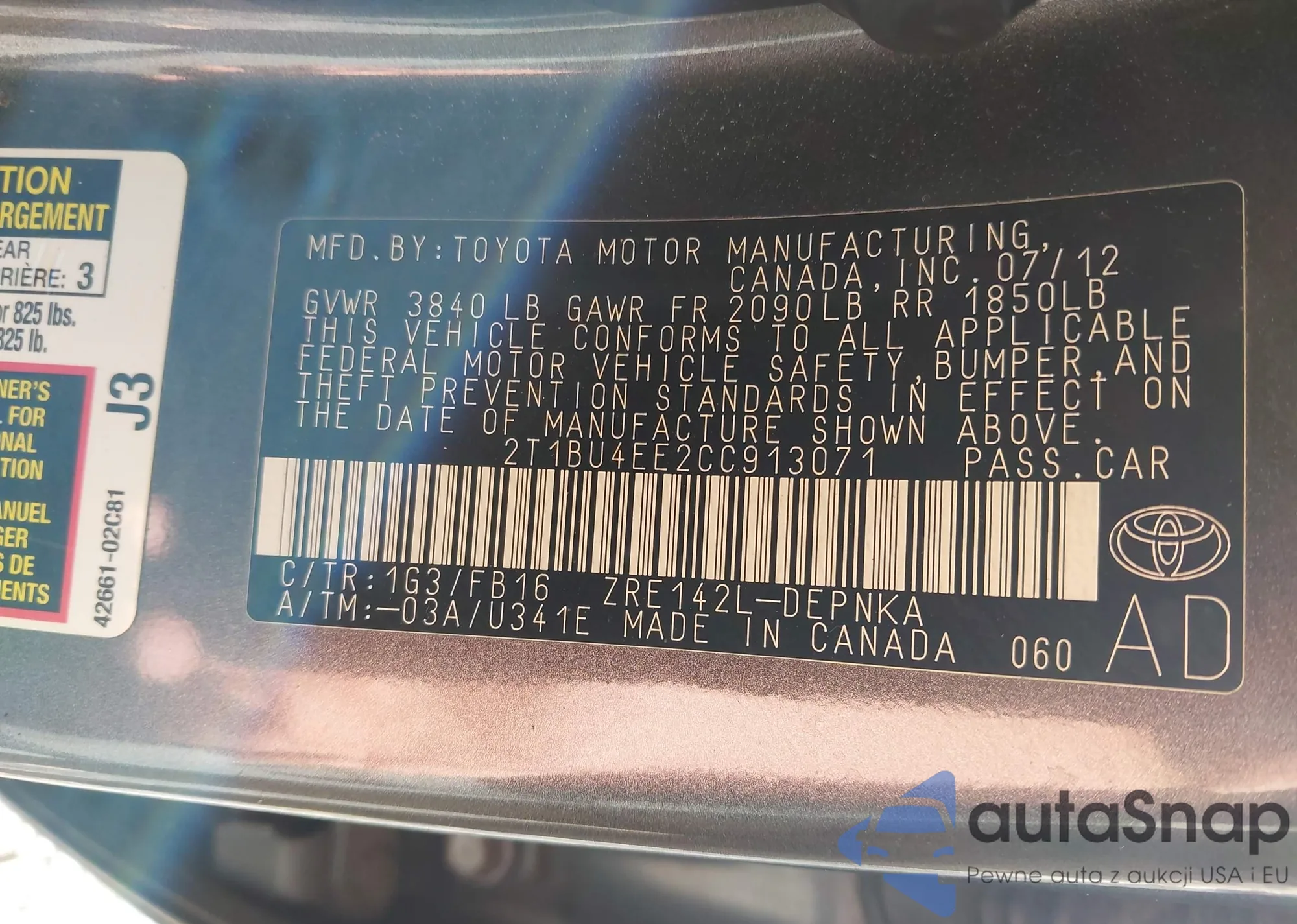 • VIN 2T1BU4EE2CC913071