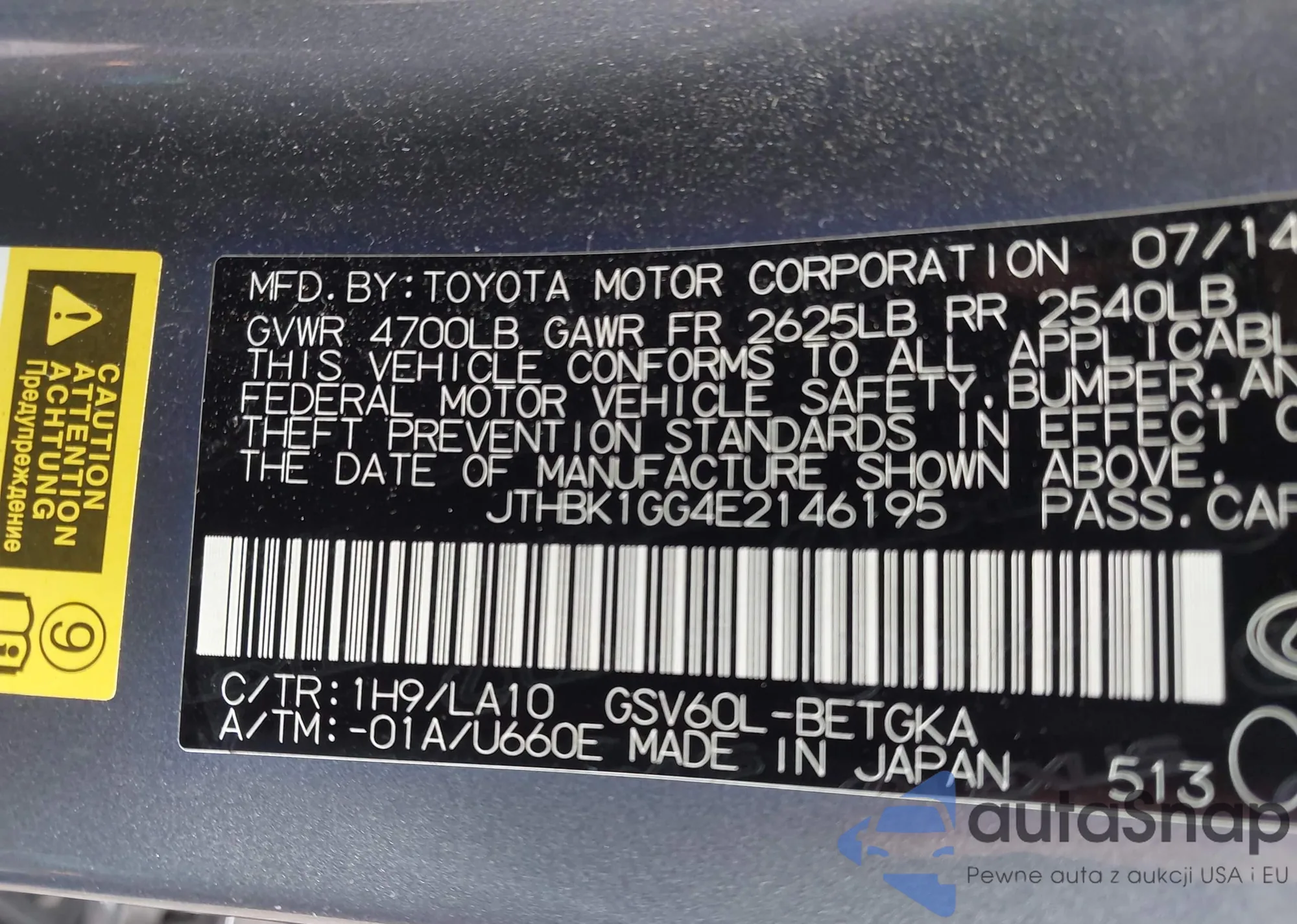 • VIN JTHBK1GG4E2146195