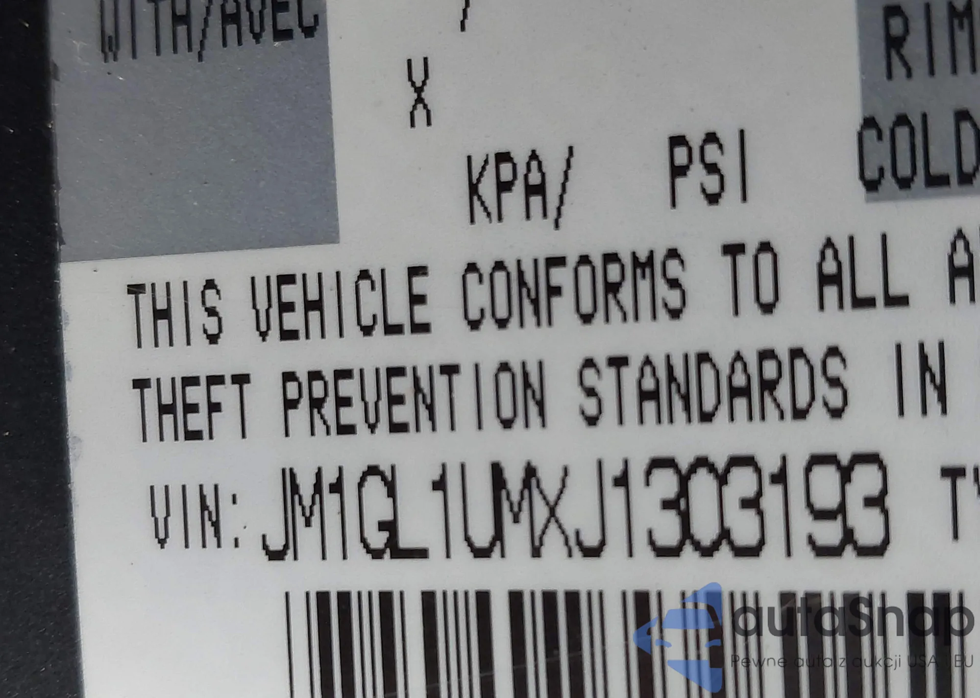 LOT: 43340849 VIN: JM1GL1UMXJ1303193