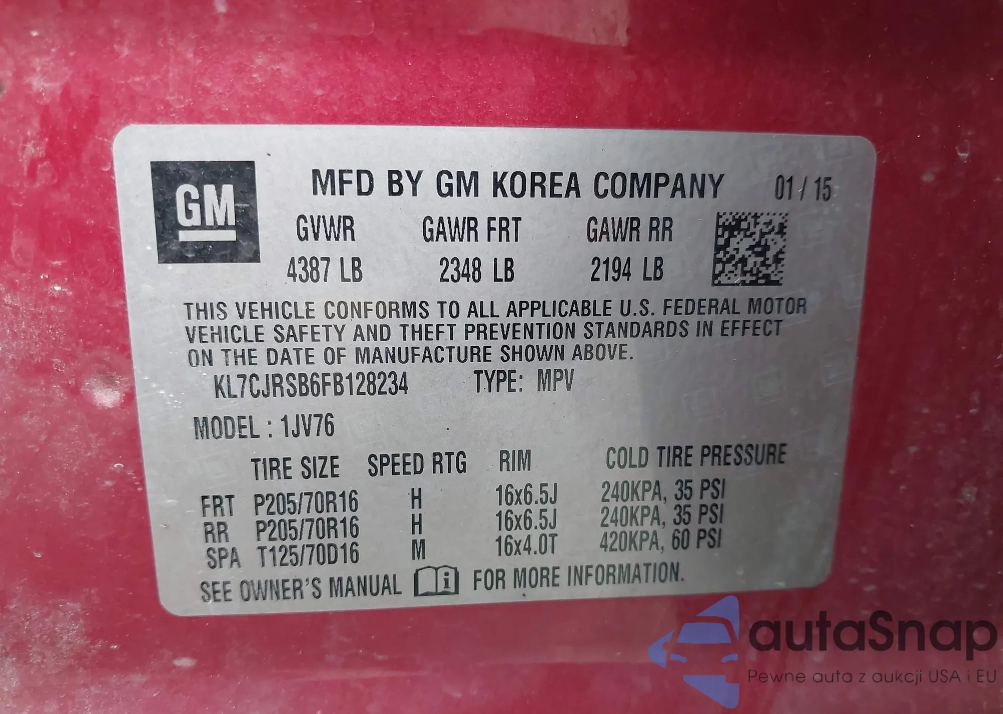 LOT: 43275742 VIN: 1GKS2BKD5MR419479