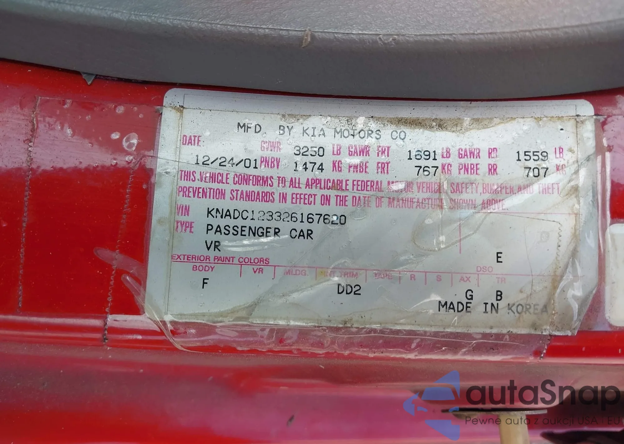 LOT: 42748345 VIN: KNADC123326167620