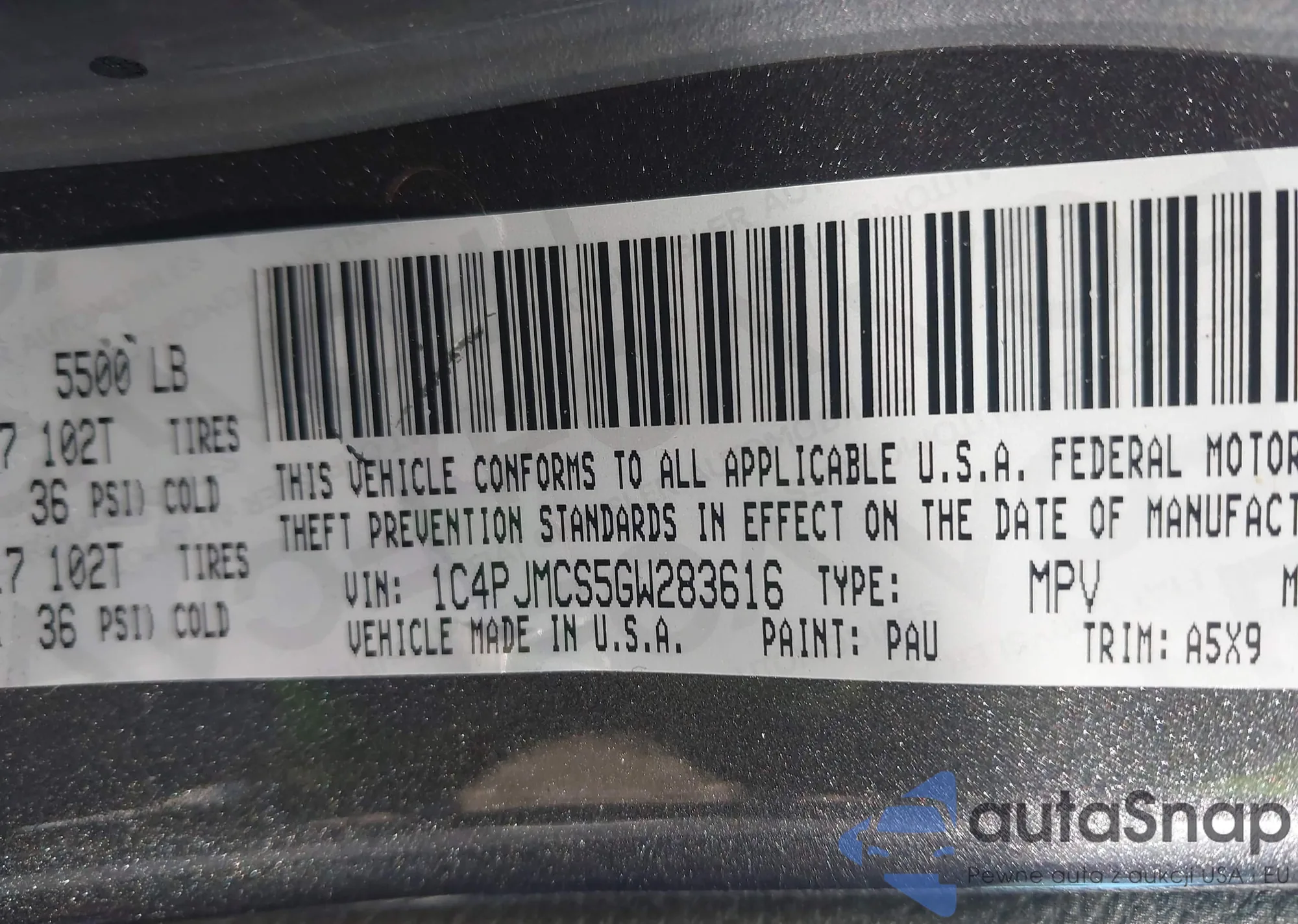 LOT: 43537051 VIN: 1C4PJMCS5GW283616