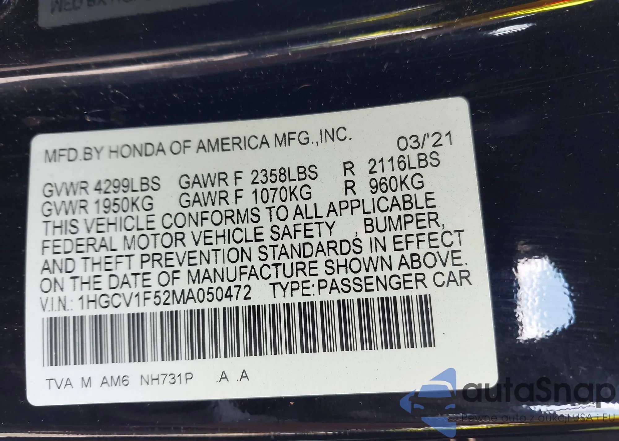 • VIN 5J6RE48799L052332