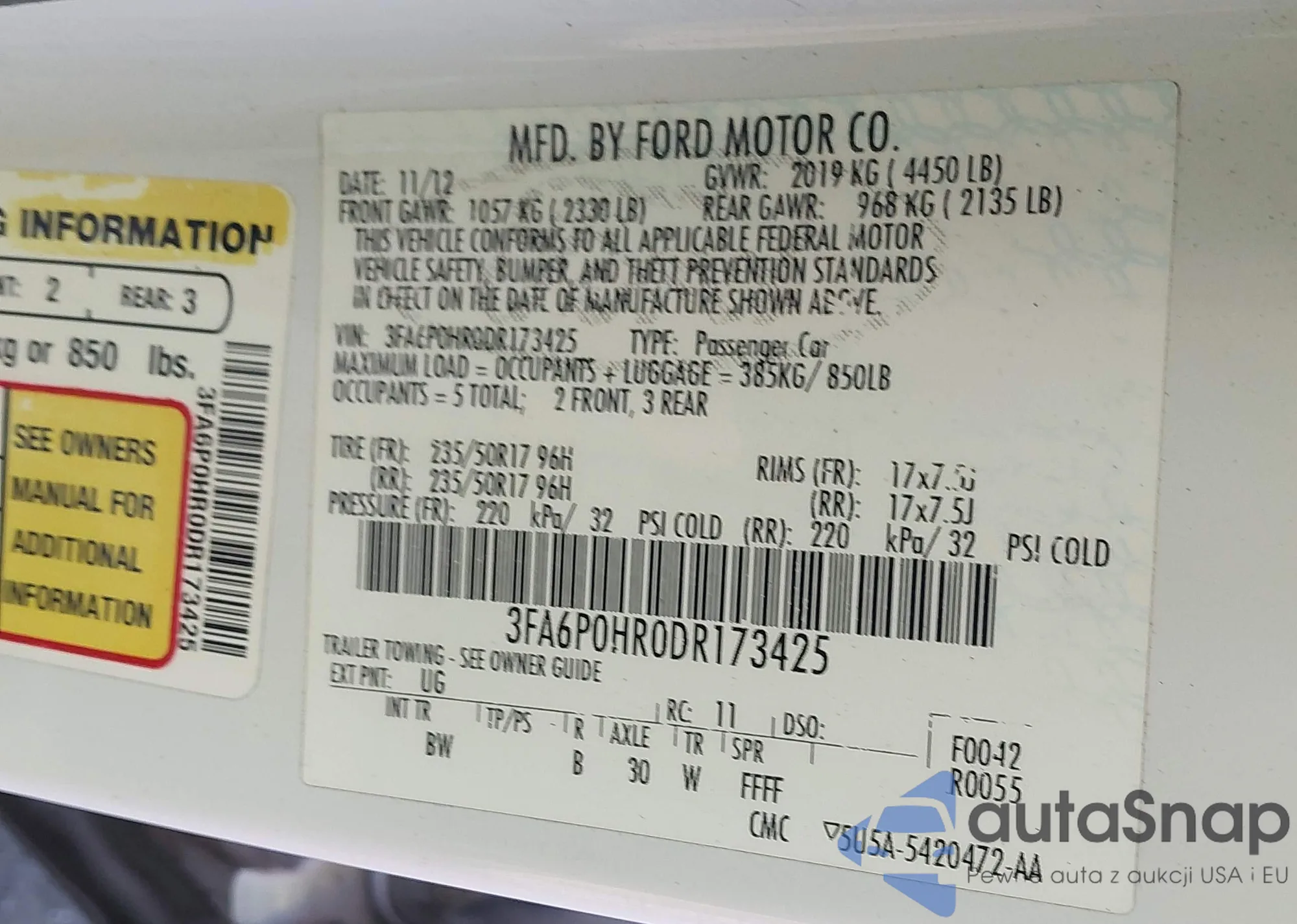 • VIN 3FA6P0HR0DR173425