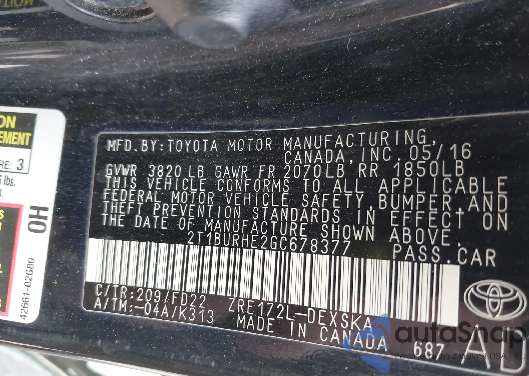 • VIN 2T1BURHE2GC678377