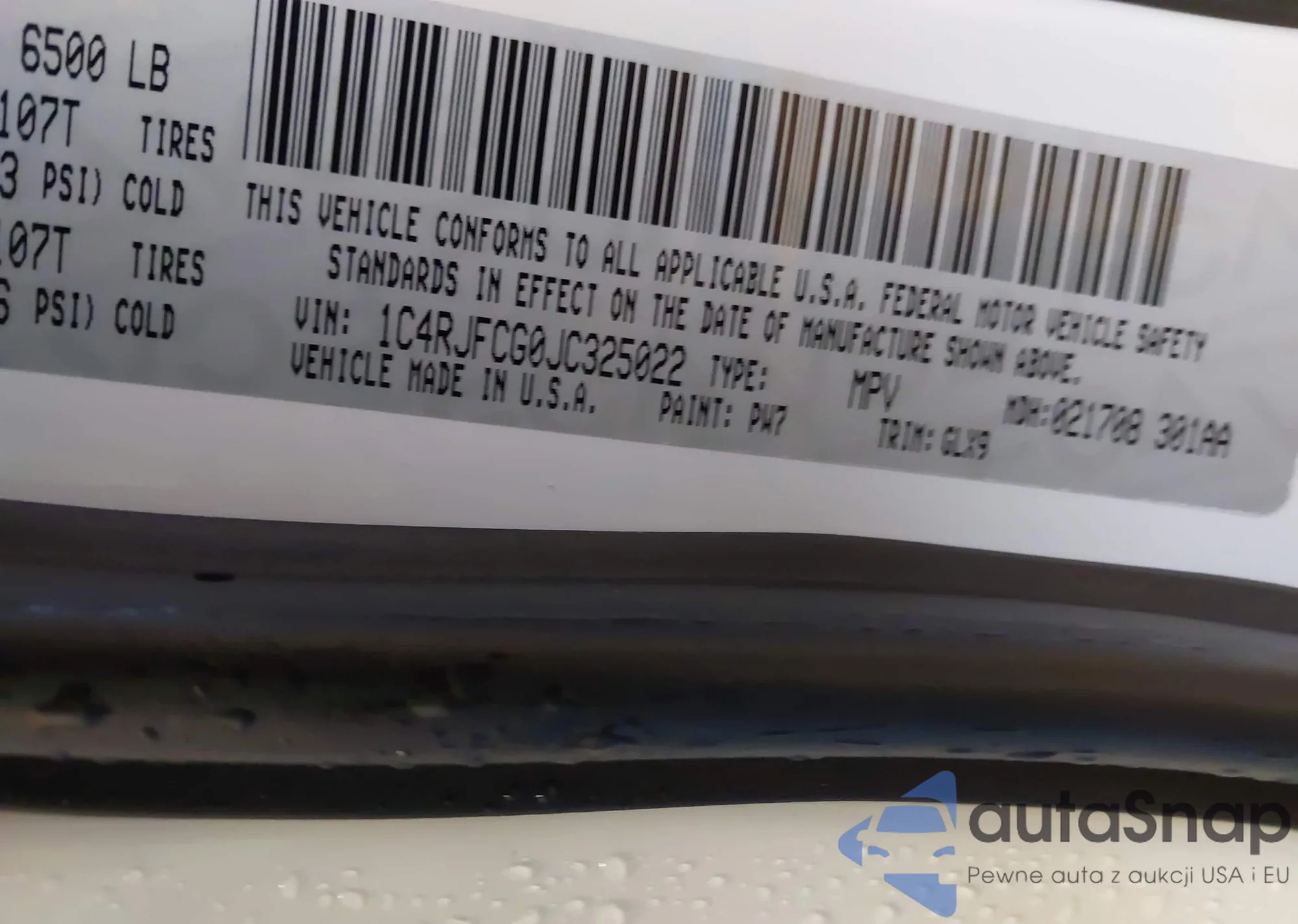 • VIN 1C4RJFBG0KC628899