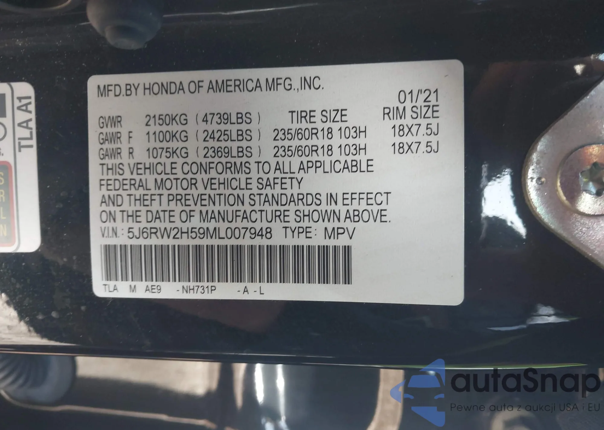LOT: 43601614 VIN: 5YFDPMAE0NP384048