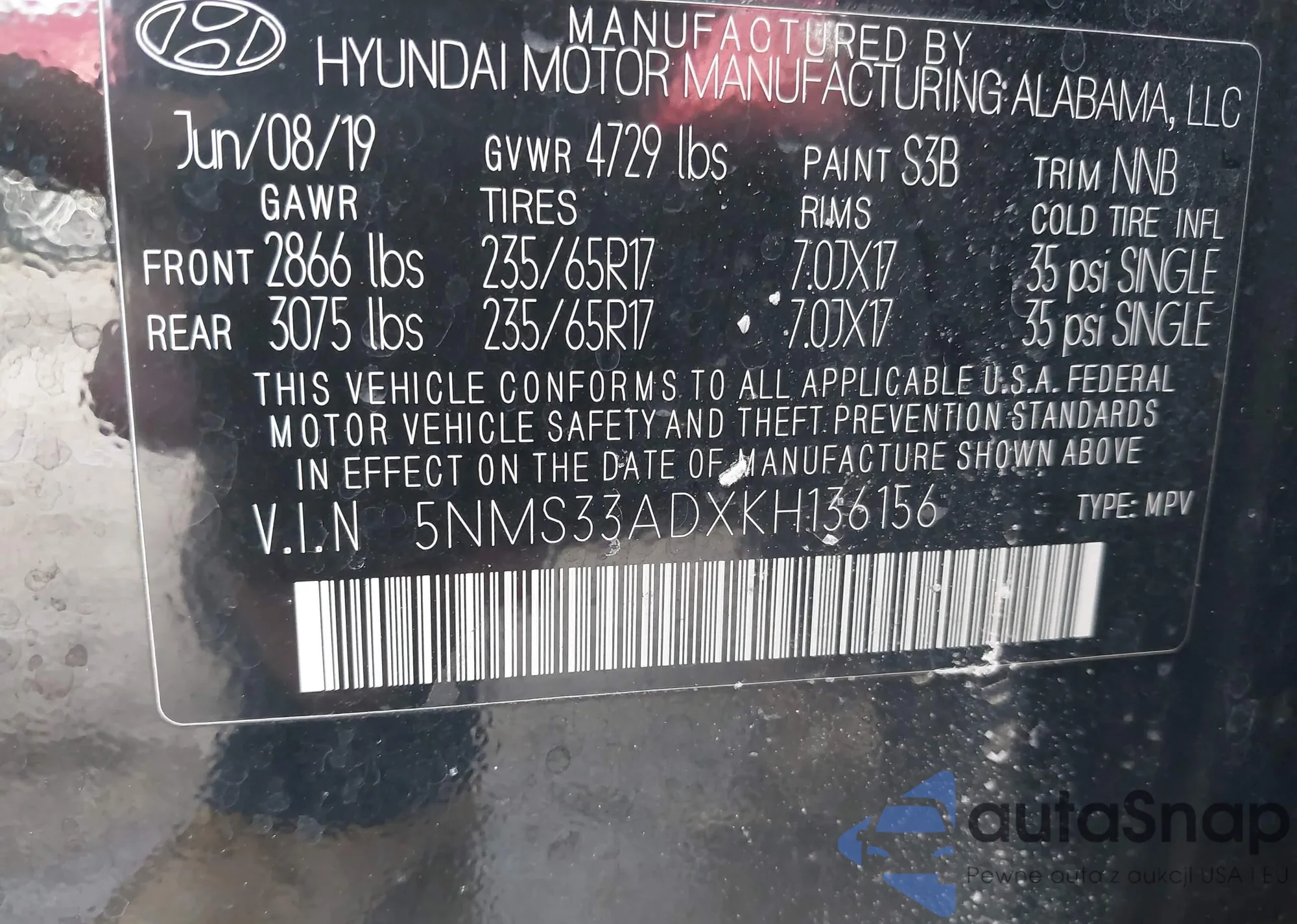 • VIN 5NMS33ADXKH136156