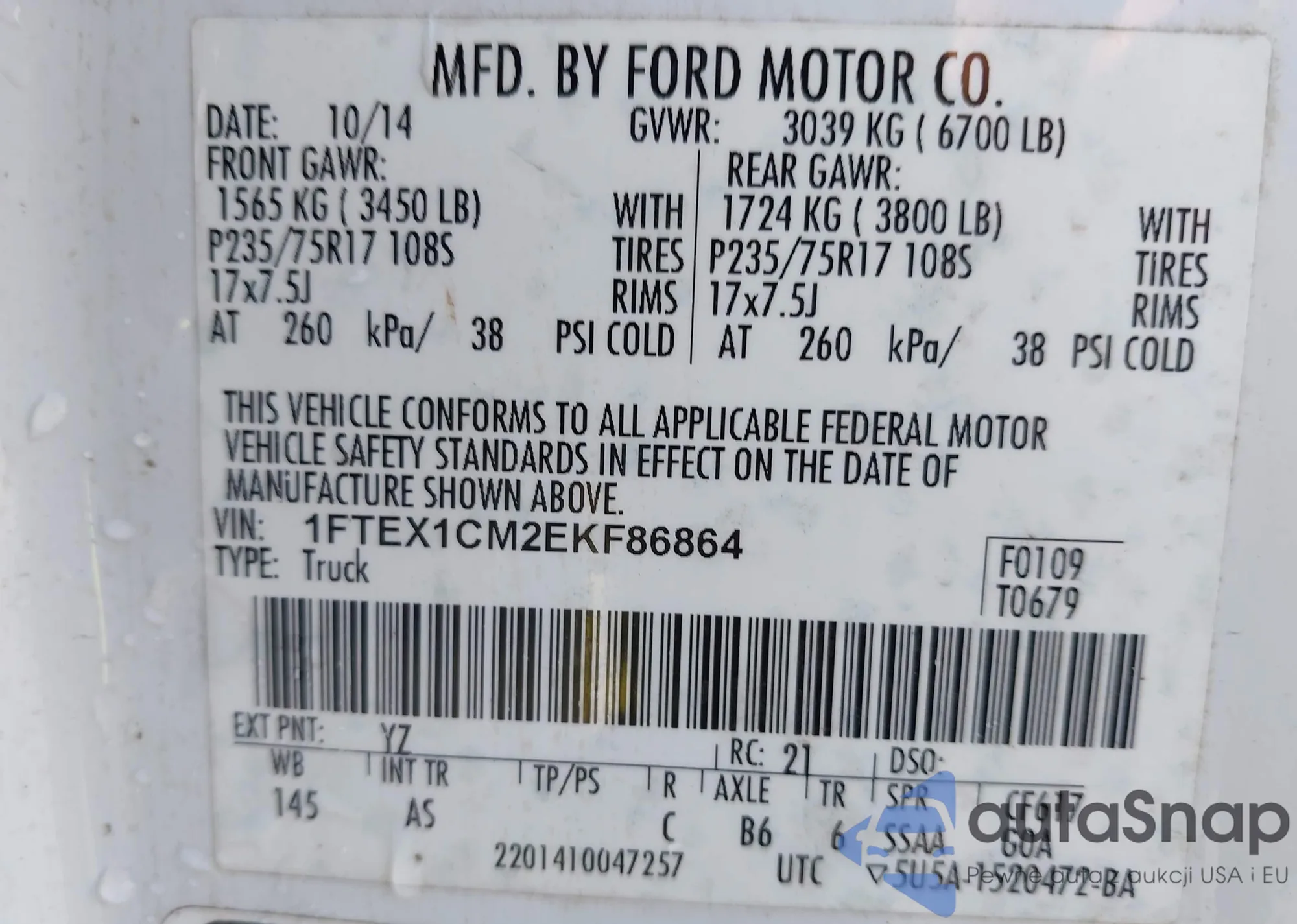 LOT: 43385113 VIN: 1FTFW1E53NFB39109