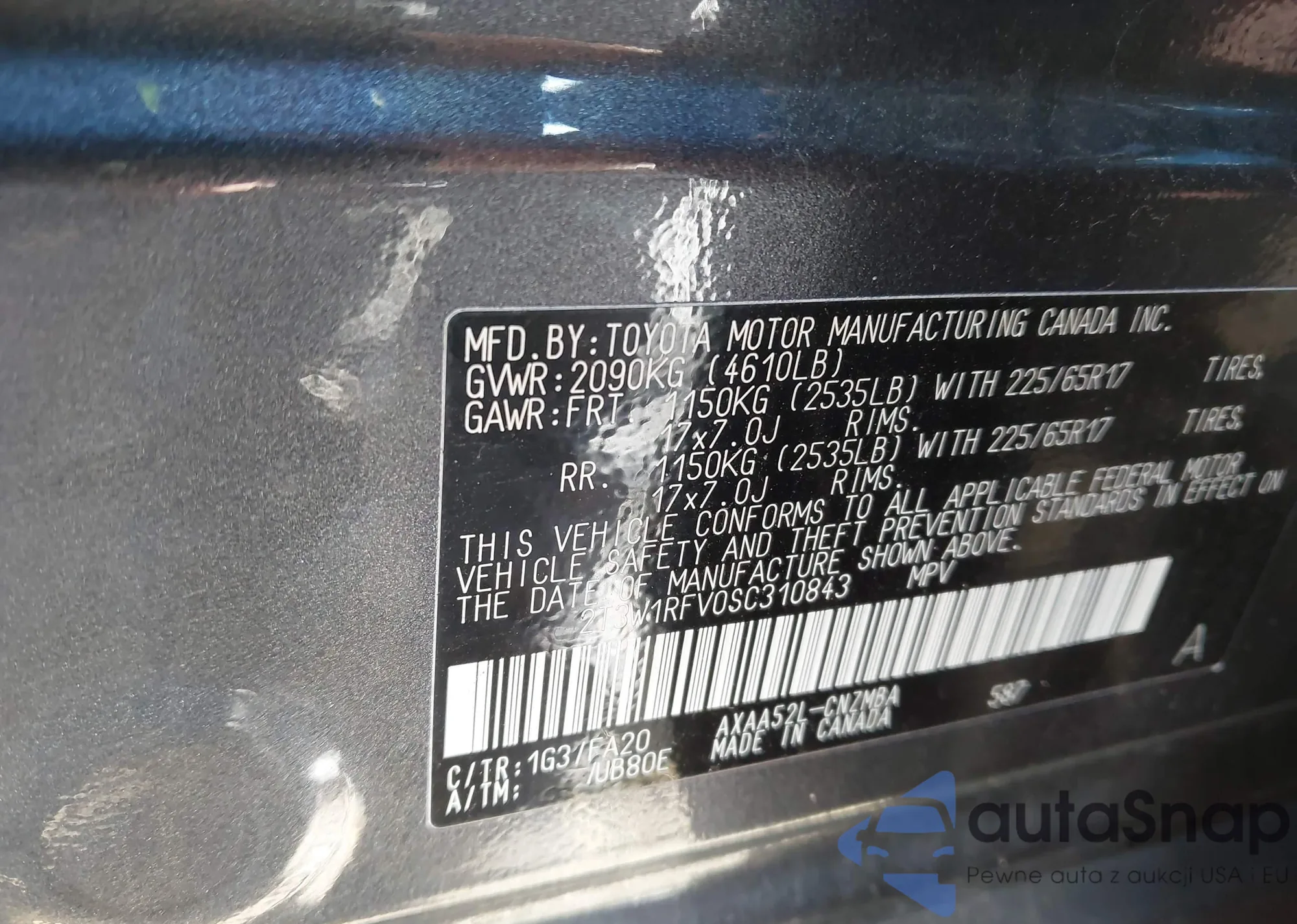 LOT: 43983681 VIN: 2T3W1RFV0SC310843