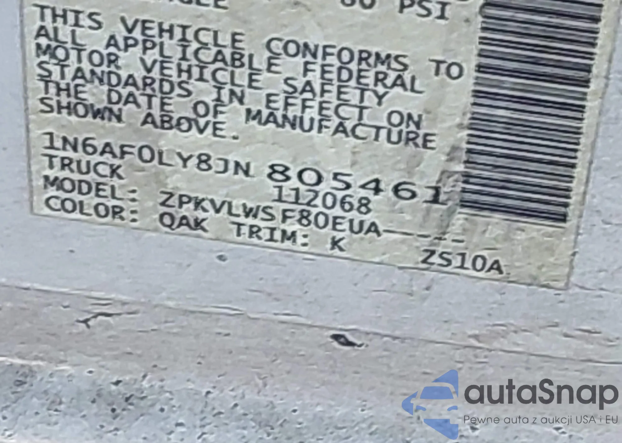 LOT: 43726327 VIN: 1N6AF0LY8JN805461