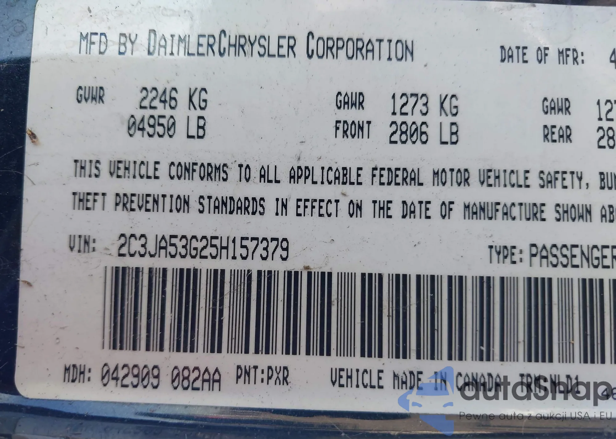 LOT: 43805202 VIN: WDDGF8BB2AR131623